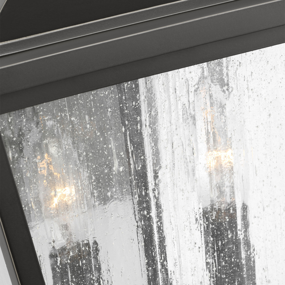 Crafted with Aluminum in a Antique Bronze finish with clear seeded glass shades