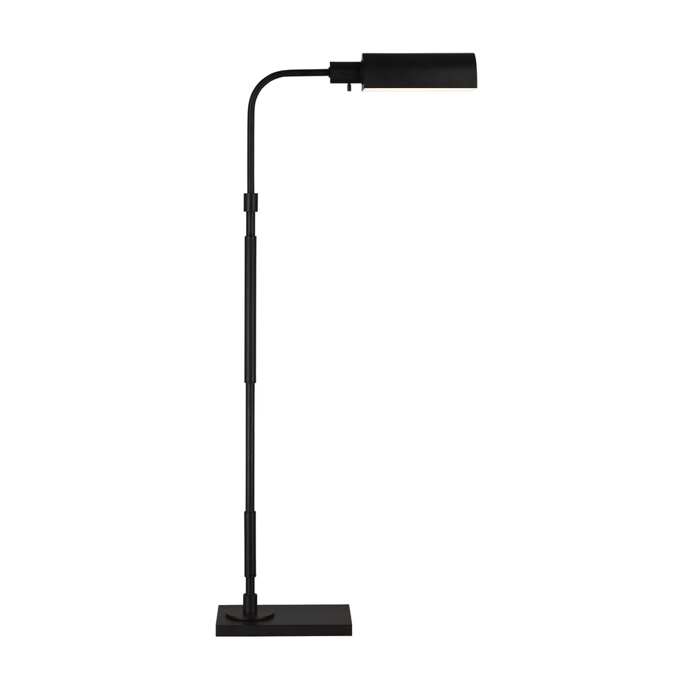 The Kenyon one light floor lamp in aged iron by Chapman & Myers were designed to be highly versatile in their application, at home in any interior. They have classic half round pharmacy shades which are mounted to a cylindrical metal stem with a differentiated stepped detailing. The Picture lights have an architecturally inspired medallions where the arms mount to the rectangular backplate.