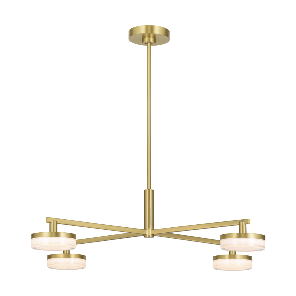 Crafted with Steel in a Burnished Brass finish with silk screen white inside clear outside glass shades