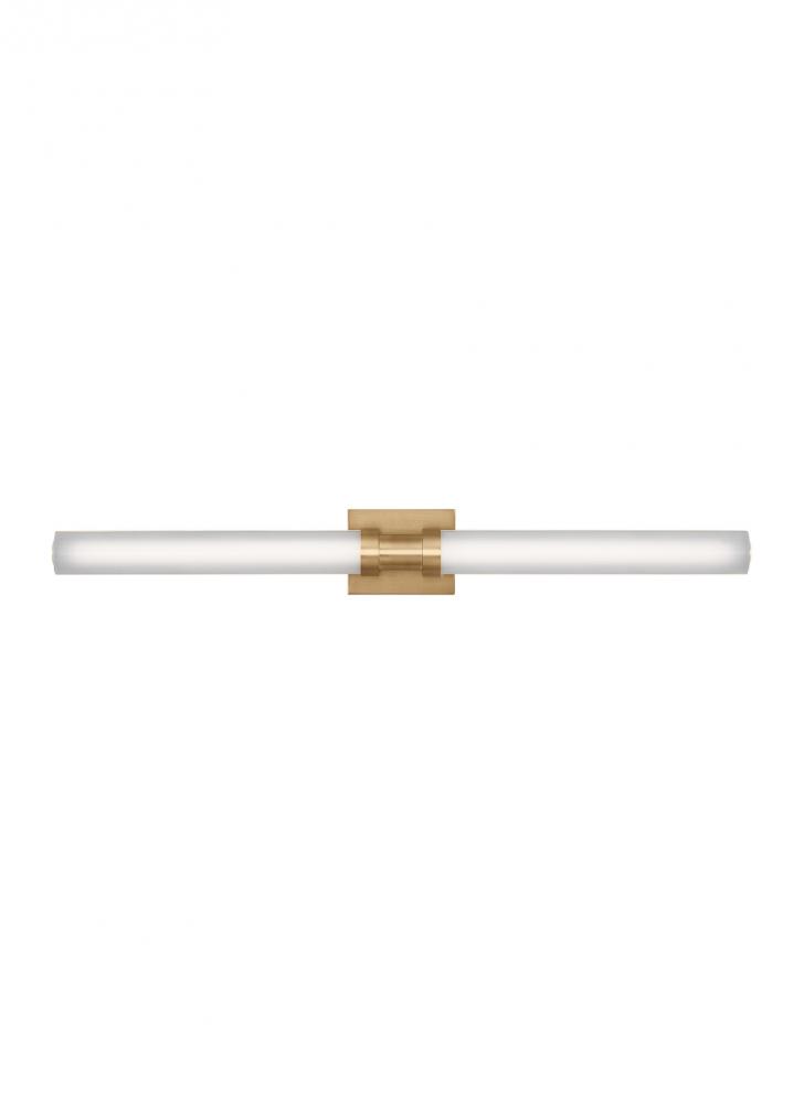 Sleek and modern, this Integrated LED bath series features a metal reflector that houses integrated LED stripes and gloss acrylic diffuser to distribute light evenly. The Kiel one light vanity fixture in Satin Brass provides abundant light for your bath vanity while adding a layer of today's style to your interior design.