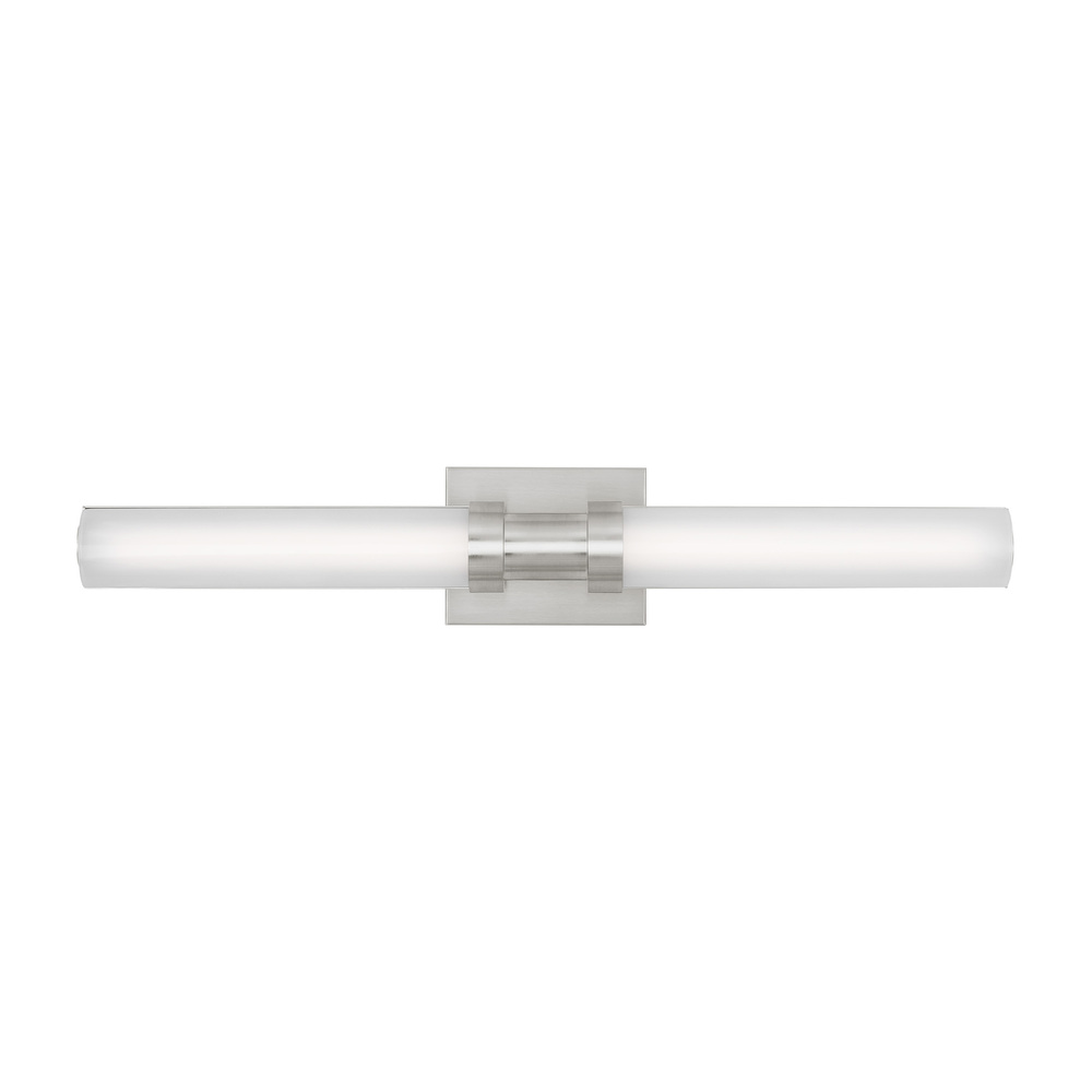 Sleek and modern, this Integrated LED bath series features a metal reflector that houses integrated LED stripes and gloss acrylic diffuser to distribute light evenly. The Kiel one light vanity fixture in brushed nickel silver provides abundant light for your bath vanity while adding a layer of today's style to your interior design.