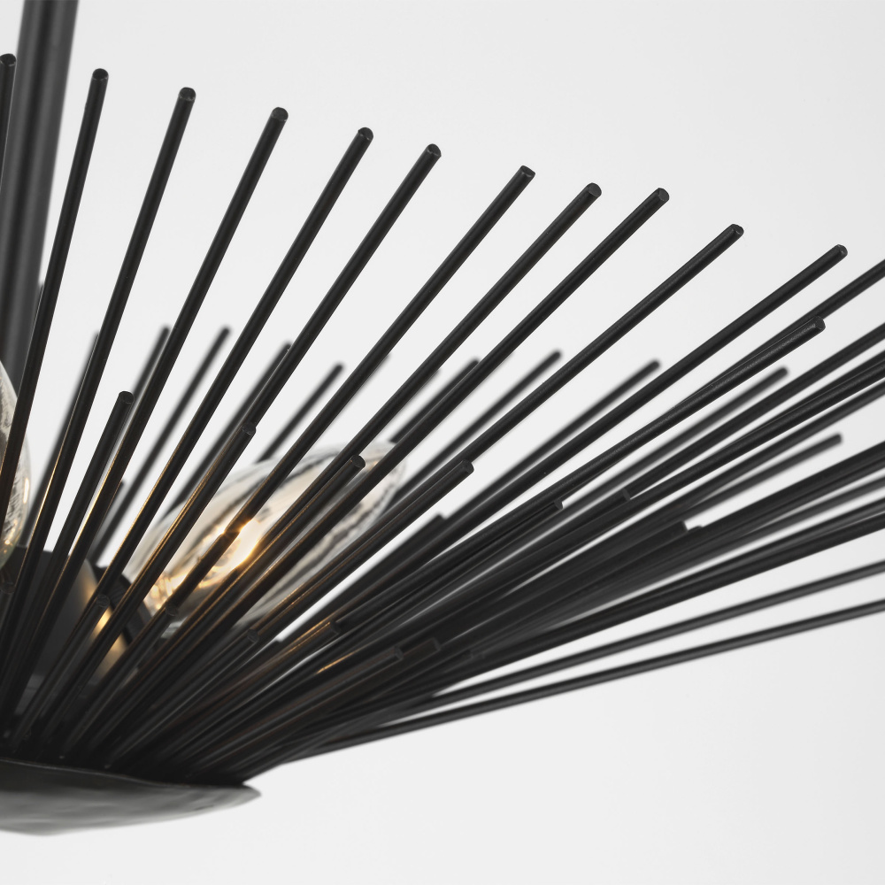 Named after the Greek God of the Sun, the Alexa Hampton Helios series is made with hand-applied gold leaf and then hand-distressed. This Mid-Century Modern fixture takes the shape of its name, with up-flowing stems resting elegantly on a round metal canopy. Straw-like brass layers of hand-cut, hand-welded metal rods form the shade of this textural fixture. The Helios series features a dynamically cut, sun-like form and gilded iron finish. This stunning piece is an eruption of light and brings a stylish presence to any aspect of your space. The assortment included fresh takes on traditional looks, beautiful and unique hand-applied finishes, and stunning, thoughtful-inspired sculptures.