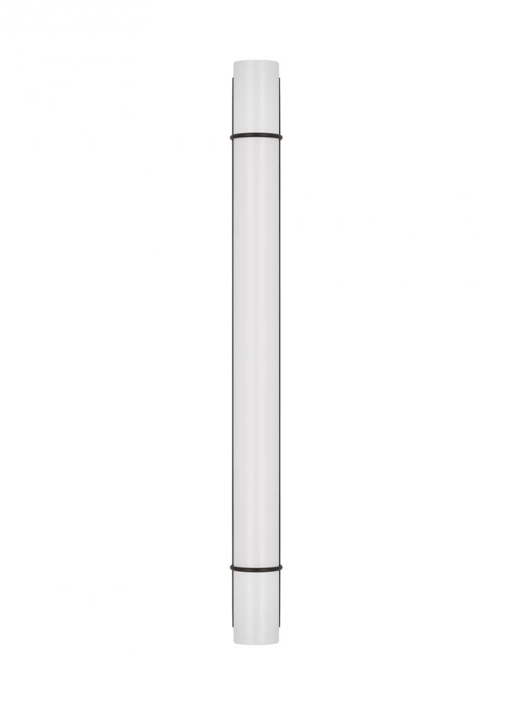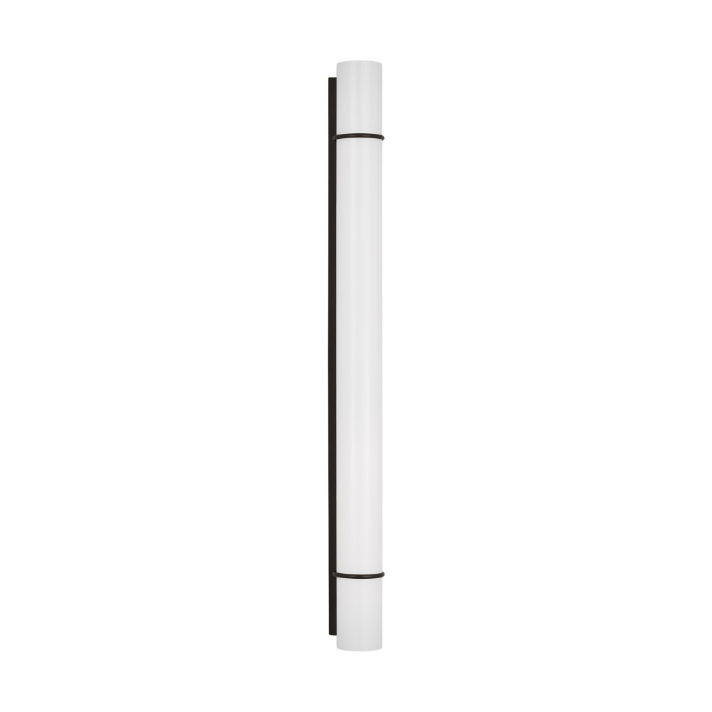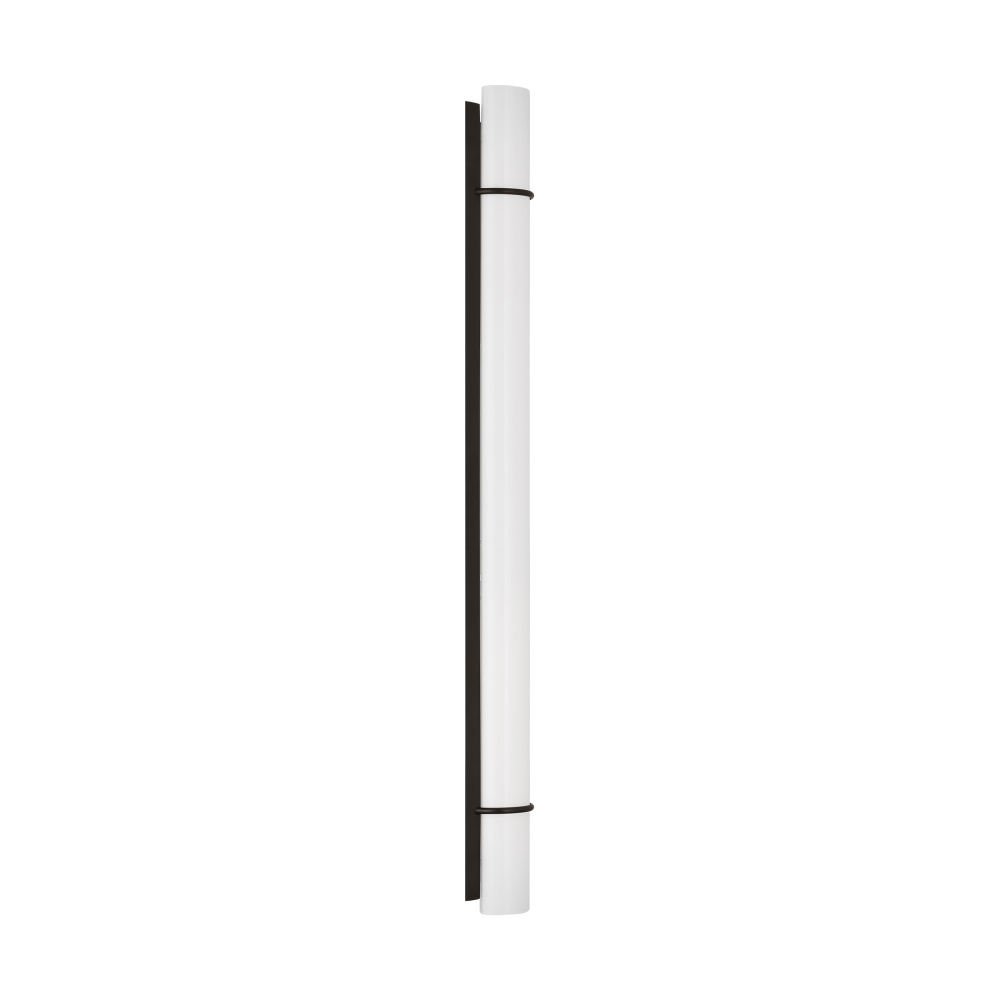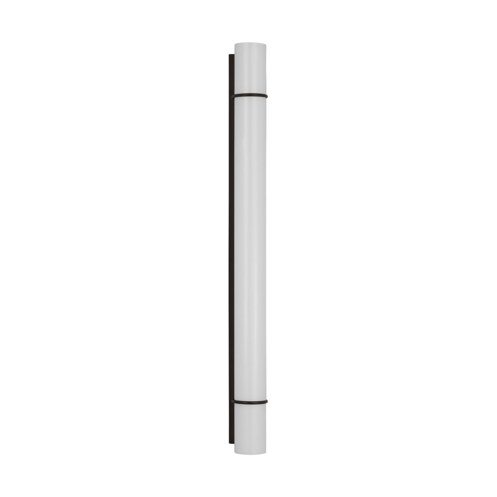 The Amelie Integrated LED vanity series by Chapman & Myers is a simplified cylindrical linear bath light with two metal rings inspired by a vintage cuff bracelet. Each sconce has a cylindrical glass shade accented by two metal rings on either end of the sconce and a metal back plate. Amelie is illuminated with custom-led panels to provide an even glow through the white glass shades. Available in three sizes and three finish options. Dimmable Integrated LED lamping with Damp location rating.