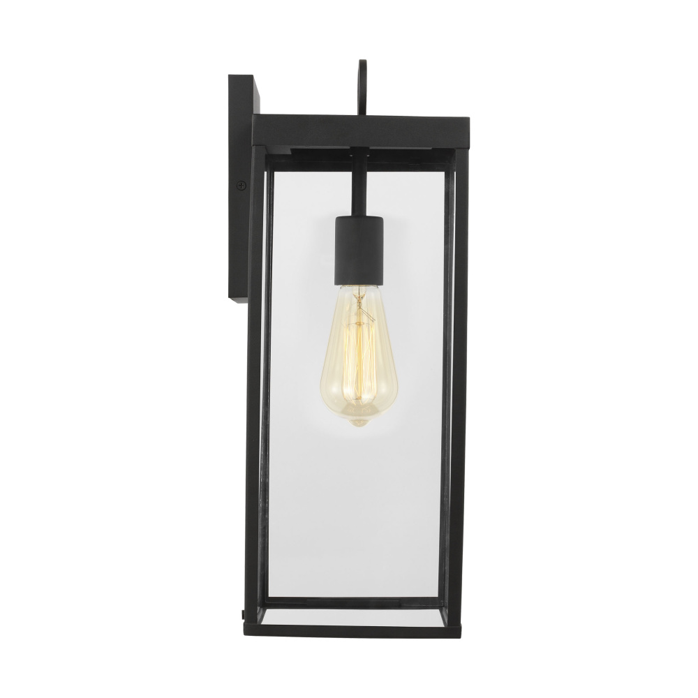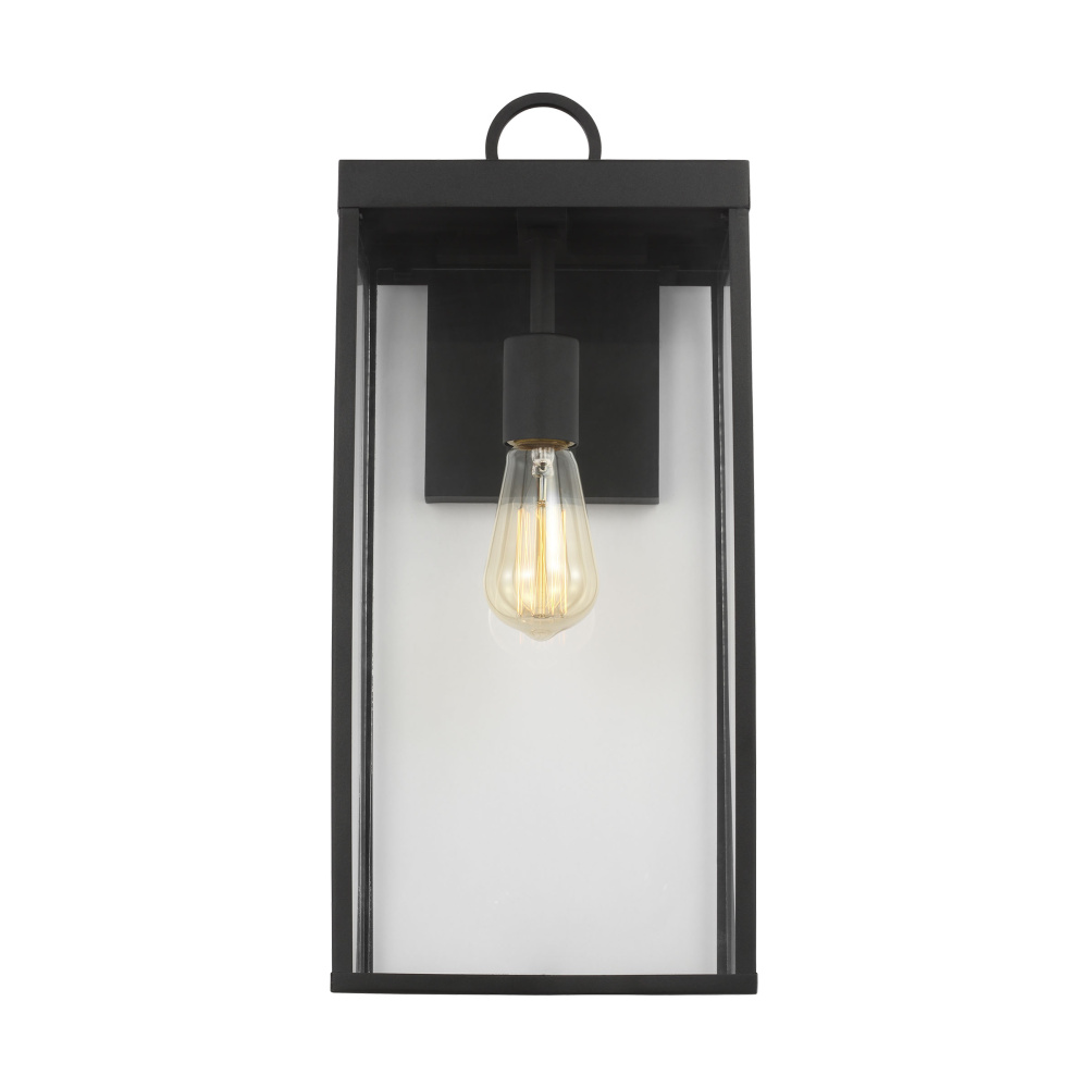 The Drew & Jonathan Howell Outdoor series infuses classic design with clean, contemporary lines. The frame is crafted from weather-resistant aluminum in an Antique Bronze or Textured Black finish for an industrial appeal and a ring detail to complement the design. Inside, Howell features an open bulb base that aims the light out over your space from a single light bulb (sold separately). Clear and opal etched glass ship with this fixture for a more customized look.