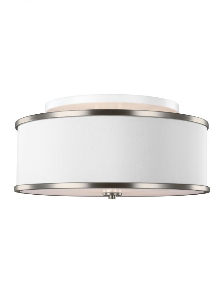 Elevate any space with the Lennon lighting collection of semi-Flush Mount fixtures from Visual Comfort Studio. Clean, transitional design, available in three finish/shade combinations, makes Lennon a versatile solution, especially where ceiling height is limited. The Lennon Collection features oversized 20" and 30"options in an Oil Rubbed Bronze finish with Ivory Linen shades, a Sunset Gold finish with cream linen shade, and a Satin Nickel finish with a White Shantung Linen Shade. All fixtures include a glass diffuser to soften the light and are damp-rated.