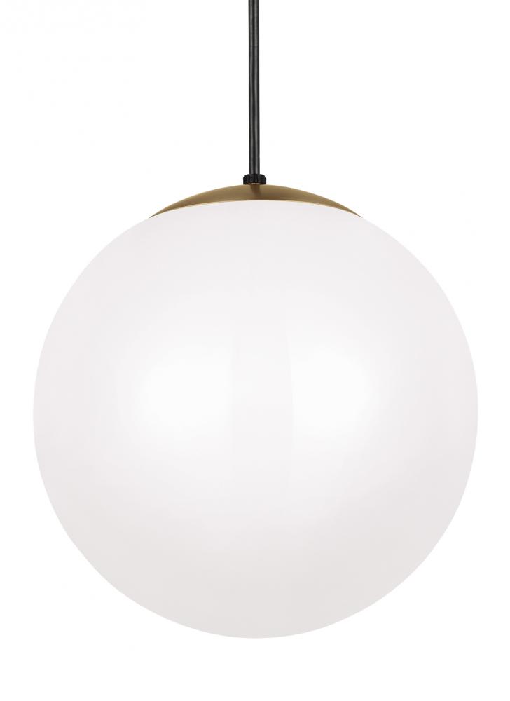 The Leo - Hanging Globe one light indoor pendant in satin brass is an ENERGY STAR® qualified lighting fixture that uses LED bulbs to save you both time and money. While hanging globes are one of lighting's hottest trends, Sea Gull's timeless Leo Collection has been around for 50 years! Constantly evolving with the times, these classic pendants are now offered with NEW Clear Seeded glass and in Satin Aluminum finish. Adjustable cloth cords allow for unlimited variations of hanging heights. All glass softly diffuse the light, each fixture comes with 54†of cuttable cord to customize the installation exactly to your needs. Easily convert every piece in the collection to LED by purchasing LED replacement lamps sold separately. All fixtures are qualified and California Title 24 compliant and damp rated for use in sheltered, damp environments like bathrooms, covered patios or porches.