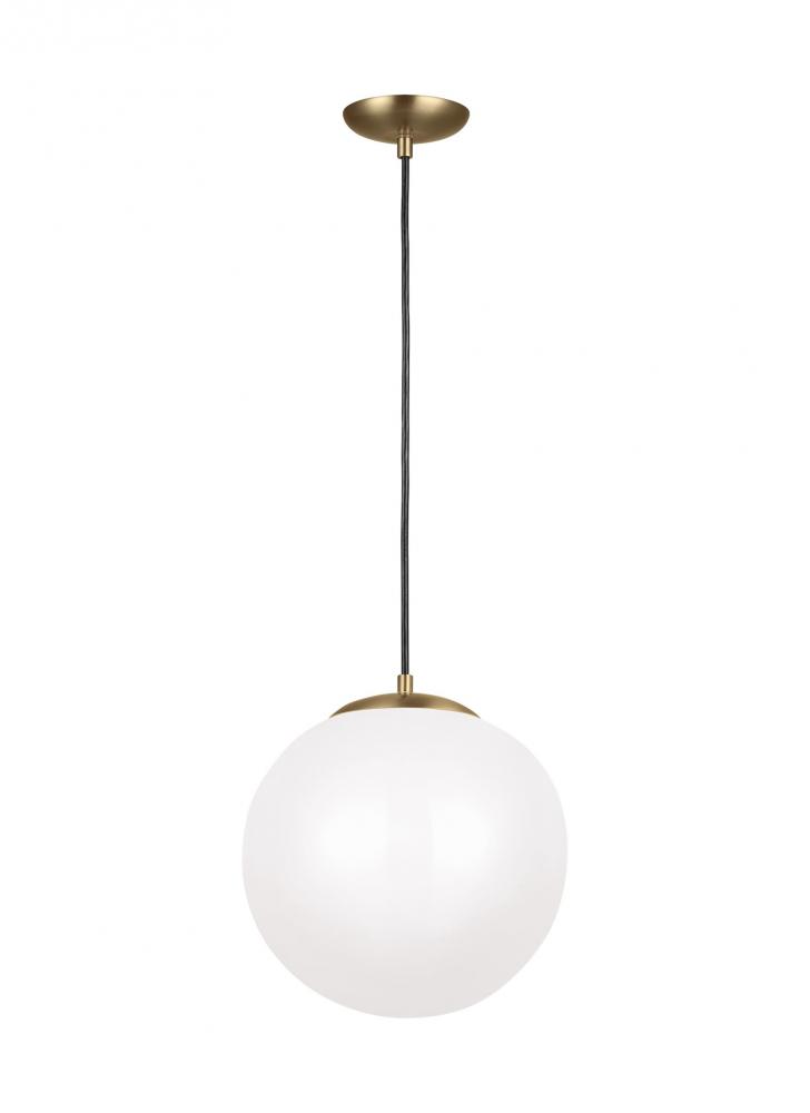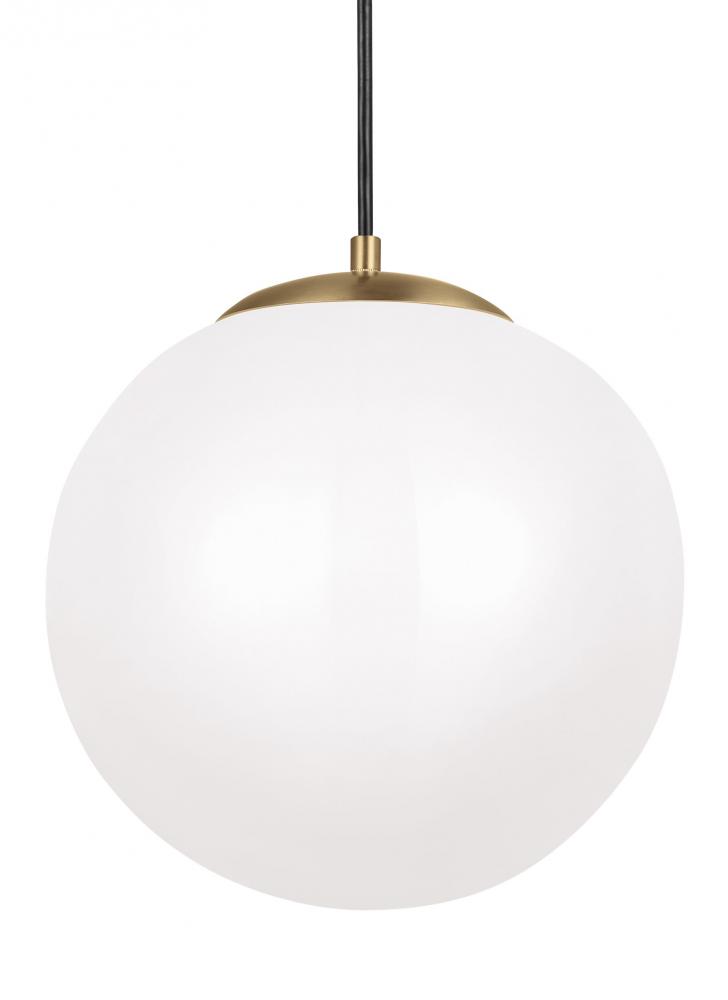 The Leo - Hanging Globe one light indoor pendant in satin brass provides abundant light to your home, while adding style and interest. While hanging globes are one of lighting's hottest trends, Sea Gull's timeless Leo Collection has been around for 50 years! Constantly evolving with the times, these classic pendants are now offered with NEW Clear Seeded glass and in Satin Aluminum finish. Adjustable cloth cords allow for unlimited variations of hanging heights. All glass softly diffuse the light, each fixture comes with 54†of cuttable cord to customize the installation exactly to your needs. Easily convert every piece in the collection to LED by purchasing LED replacement lamps sold separately. All fixtures are qualified and California Title 24 compliant and damp rated for use in sheltered, damp environments like bathrooms, covered patios or porches.