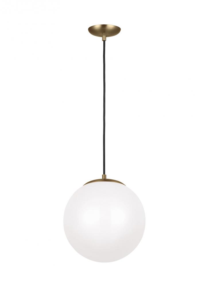 The Leo - Hanging Globe one light indoor pendant in satin brass is the perfect way to achieve your desired fashion or functional needs in your home. While hanging globes are one of lighting's hottest trends, Sea Gull's timeless Leo Collection has been around for 50 years! Constantly evolving with the times, these classic pendants are now offered with NEW Clear Seeded glass and in Satin Aluminum finish. Adjustable cloth cords allow for unlimited variations of hanging heights. All glass softly diffuse the light, each fixture comes with 54†of cuttable cord to customize the installation exactly to your needs. Easily convert every piece in the collection to LED by purchasing LED replacement lamps sold separately. All fixtures are qualified and California Title 24 compliant and damp rated for use in sheltered, damp environments like bathrooms, covered patios or porches.