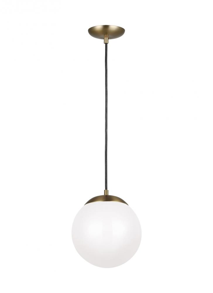 The Leo - Hanging Globe one light indoor pendant in satin brass provides abundant light to your home, while adding style and interest. While hanging globes are one of lighting's hottest trends, Sea Gull's timeless Leo Collection has been around for 50 years! Constantly evolving with the times, these classic pendants are now offered with NEW Clear Seeded glass and in Satin Aluminum finish. Adjustable cloth cords allow for unlimited variations of hanging heights. All glass softly diffuse the light, each fixture comes with 54†of cuttable cord to customize the installation exactly to your needs. Easily convert every piece in the collection to LED by purchasing LED replacement lamps sold separately. All fixtures are qualified and California Title 24 compliant and damp rated for use in sheltered, damp environments like bathrooms, covered patios or porches.