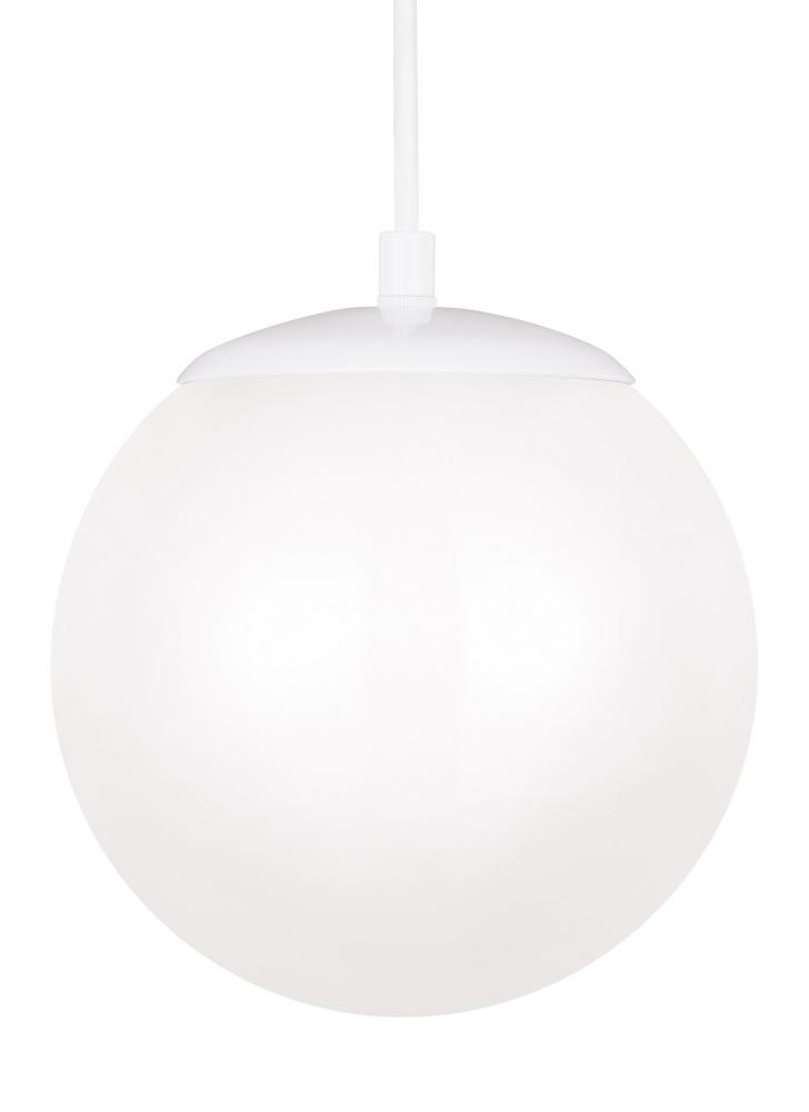 The Leo - Hanging Globe one light indoor pendant in white is the perfect way to achieve your desired fashion or functional needs in your home. While hanging globes are one of lighting's hottest trends, Sea Gull's timeless Leo Collection has been around for 50 years! Constantly evolving with the times, these classic pendants are now offered with NEW Clear Seeded glass and in Satin Aluminum finish. Adjustable cloth cords allow for unlimited variations of hanging heights. All glass softly diffuse the light, each fixture comes with 54†of cuttable cord to customize the installation exactly to your needs. Easily convert every piece in the collection to LED by purchasing LED replacement lamps sold separately. All fixtures are qualified and California Title 24 compliant and damp rated for use in sheltered, damp environments like bathrooms, covered patios or porches.