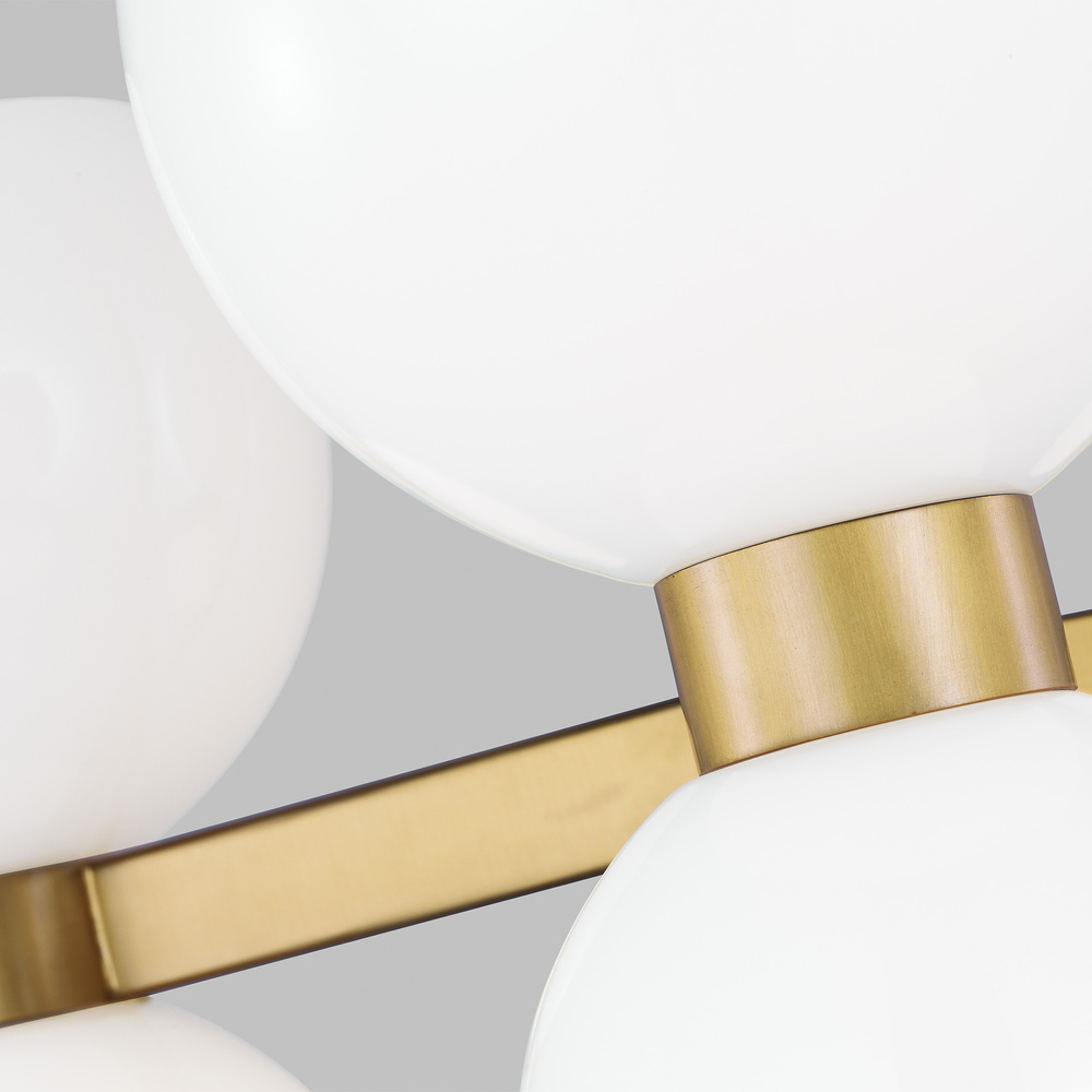 Londyn is inspired by geometric playful midcentury fixtures in metal and glass with exciting profiles and scale play. Six spherical forms in different sizes connected by a metal cuff—a geometric and playful flush mount. This Flush Mount would be home in any dining room, entryway or kitchen.