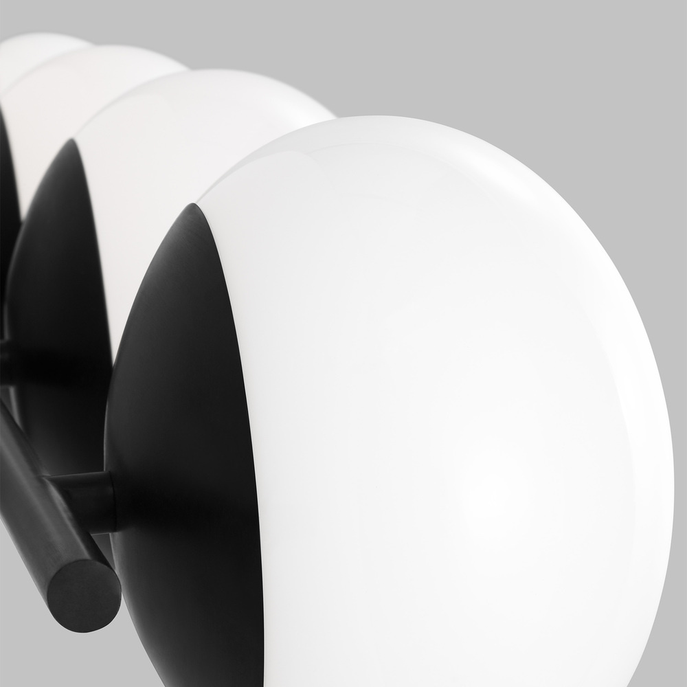 The Lune mid-century modern collection from Ellen DeGeneres is offered in two finishes including Aged Iron and Burnished Brass. The symmetrical abstract of the silhouette is deceptively simple with your attention being drawn to the milk glass shade featuring no visible hardware. We are expanding this floor lamp to a full series and adding an Aged Iron finish option. Lune has a simple yet sophisticated design. The slender metal frame features Aged Iron or Burnished Brass arms that are complete with a white glass globe at each end. The brass accents handsomely complement the black or brass frame to create a mid-century modern vibe.