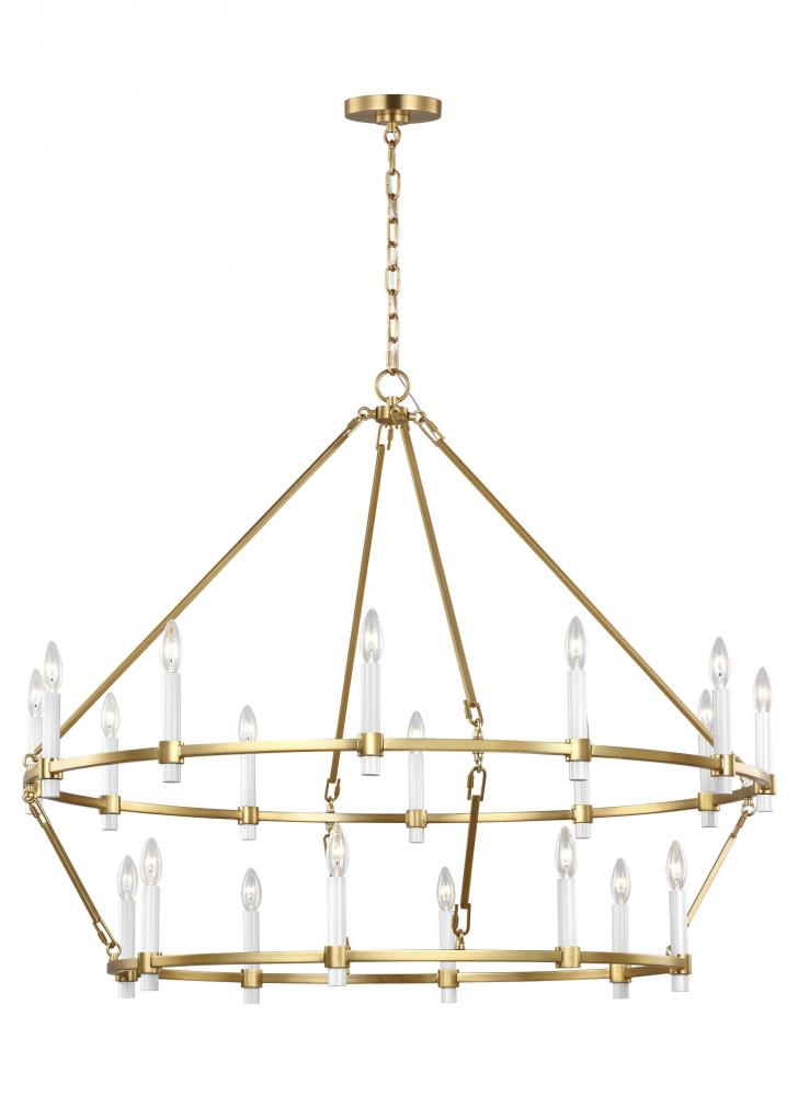 Perfect for a modern farmhouse, updated historic home, or to fit into the modern traditional style, Marston by Chapman & Myers offers an emerging trend of classic design without the fuss and ornate detailing of traditional design. The Marston twenty-light multi-tier chandelier from Chapman & Myers gives the illusion that the candles are floating - each suspended by a simple metal frame. The corners of the brass square tubing give definition to the minimal metal frame. The cream candle covers intersect the frame, revealed both above and below their metal collars. Available in Burnished Brass finish.