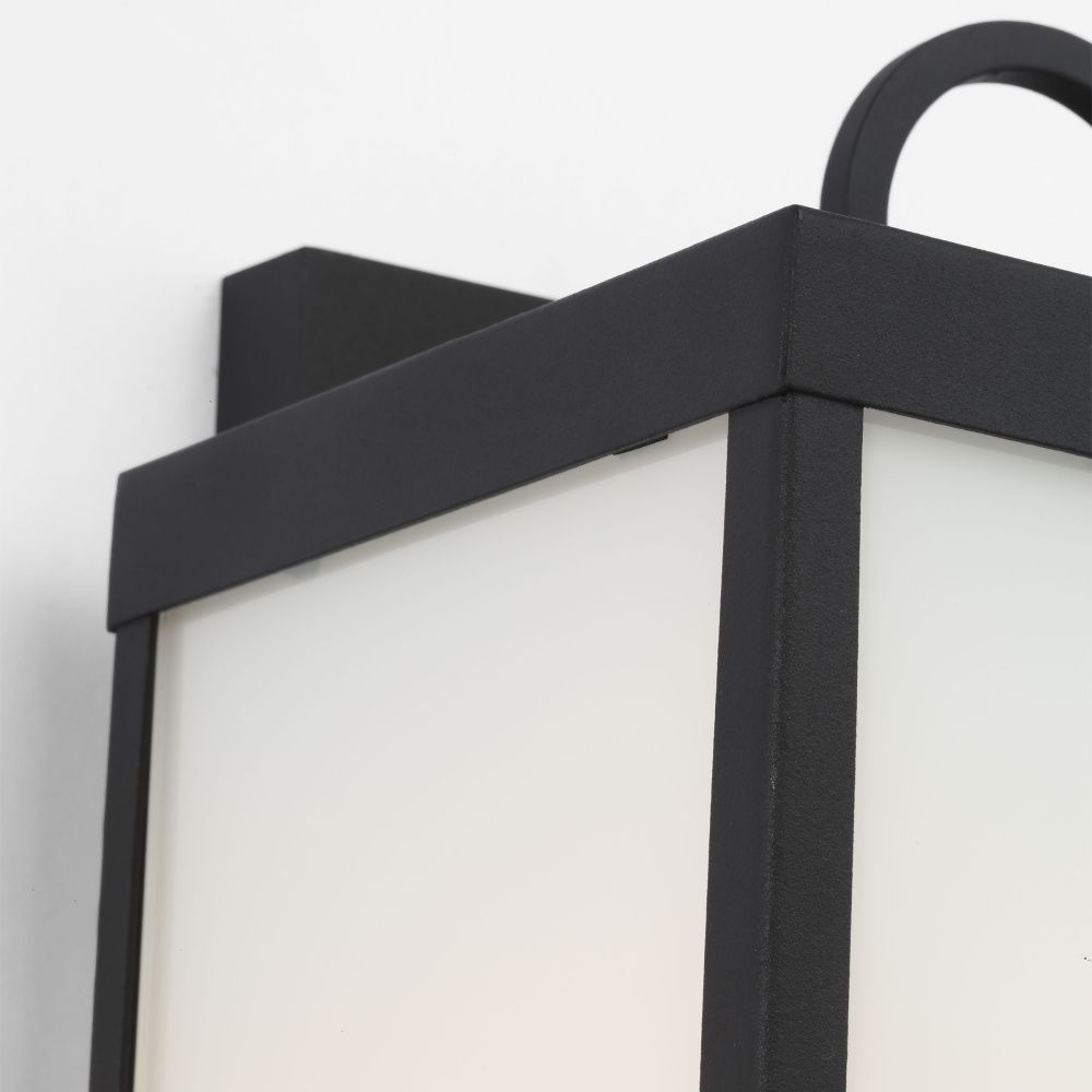 Modern exterior fixture will complement outdoor areas such as garage entries, sheds, or patios