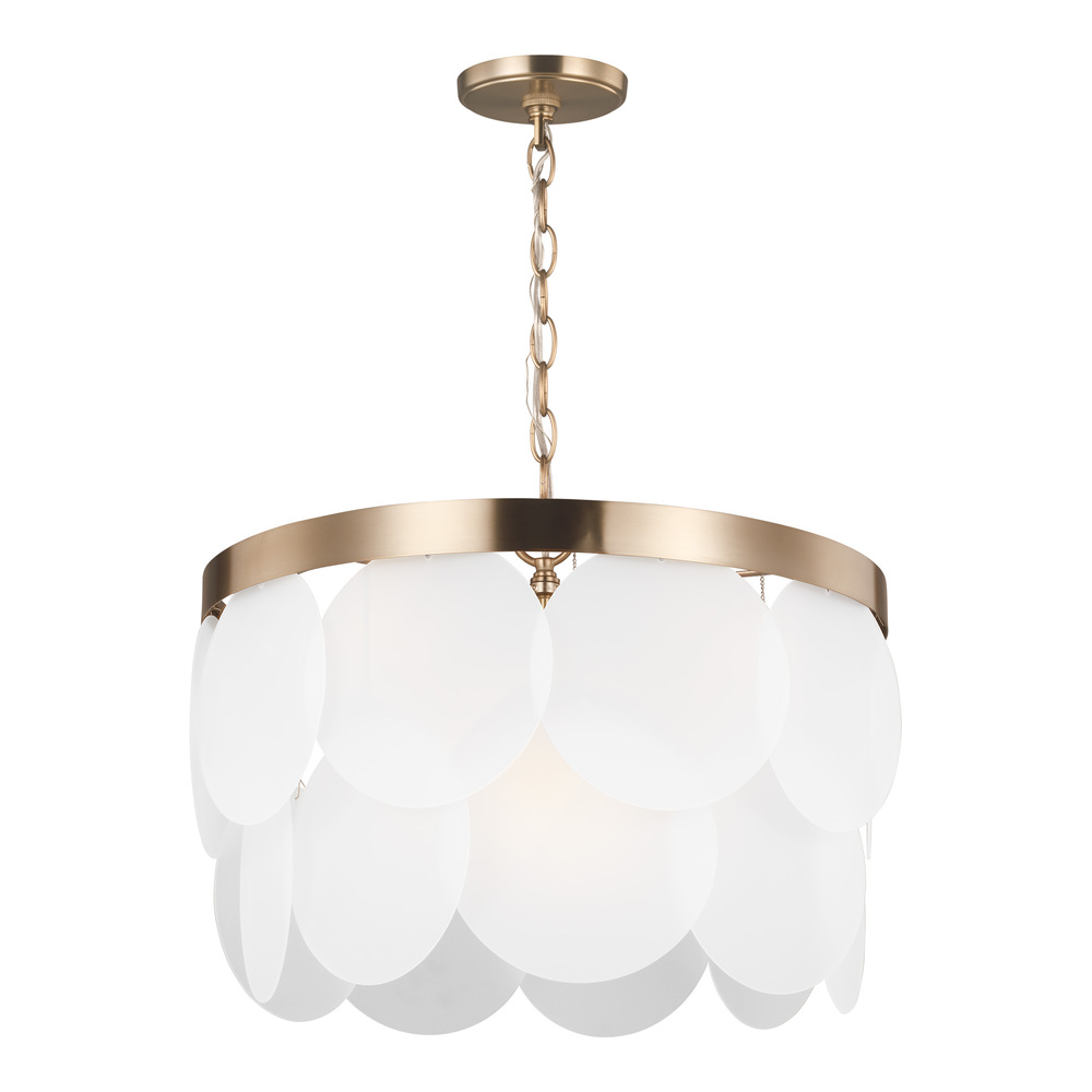 The Mellita six light indoor pendant in satin brass enhances the beauty of your home with ample light and style to match today's trends. Full of structure and movement the Mellita chandelier gracefully positions multiple tiers of oversized etched glass disks.