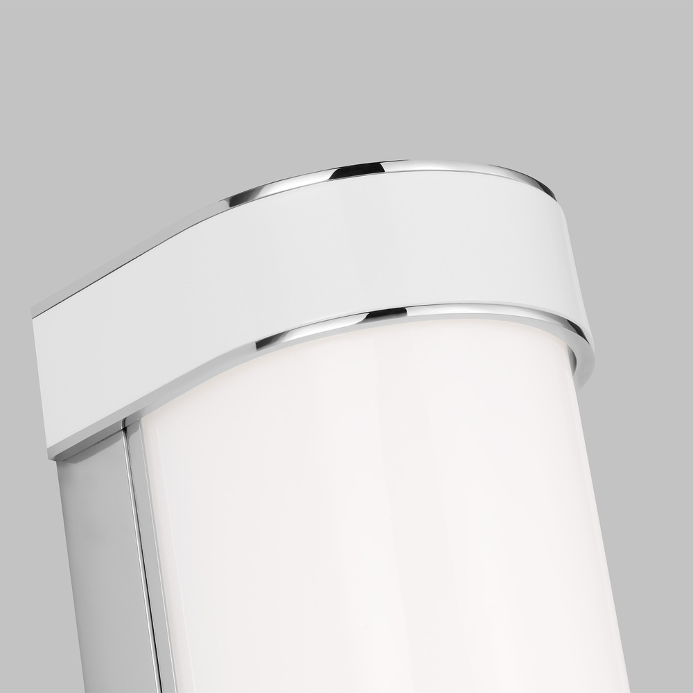 Mid-century modern fixture is damp rated and will complement a bathroom, bedroom, entry room or hallway