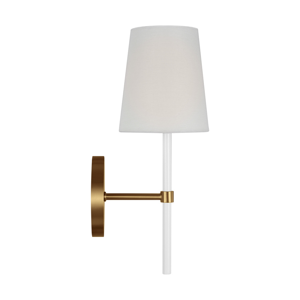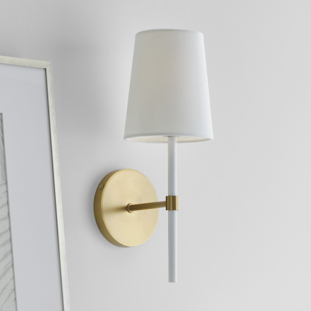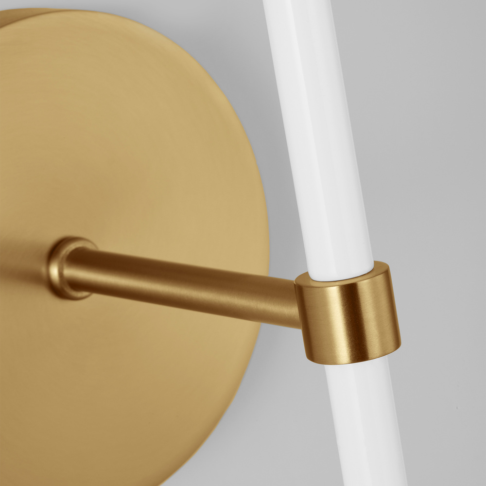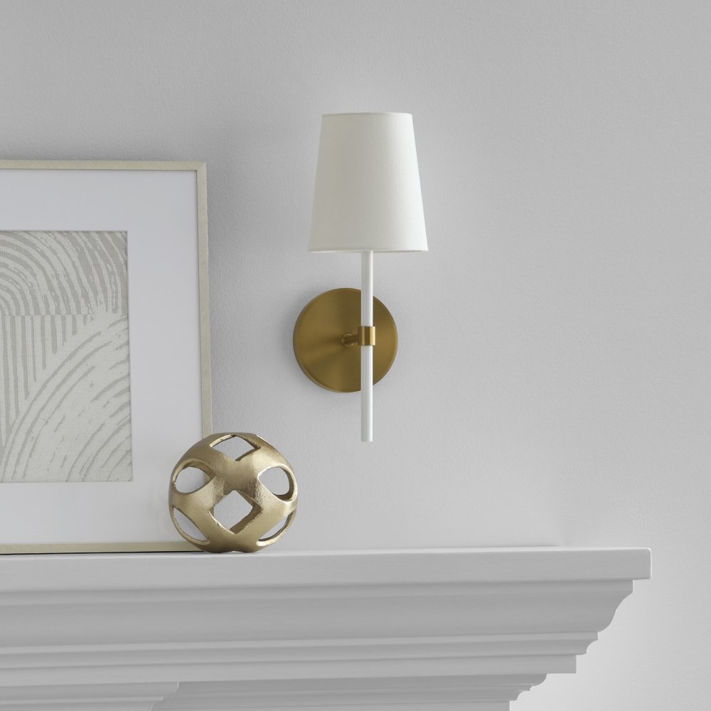The Monroe one light sconce is inspired by graphic enameled metal jewelry and decorative accessories from kate spade with a nod to late 50s atomic era colorful designs. Monroe exhibits clean lighting profiles and dressed them up with painted sections and metal accents.