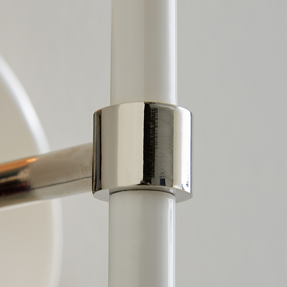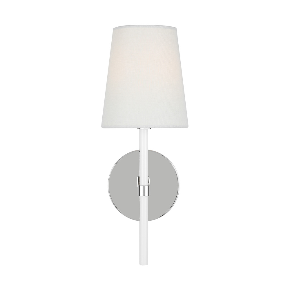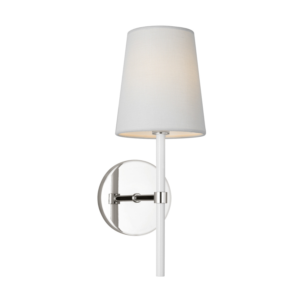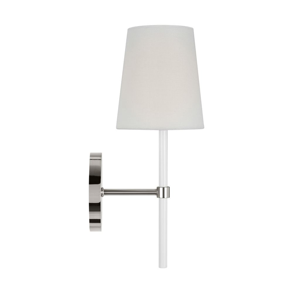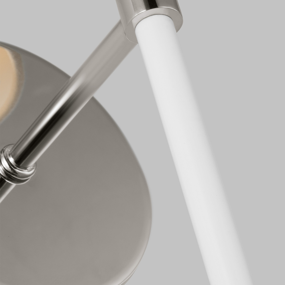 The Monroe one light sconce is inspired by graphic enameled metal jewelry and decorative accessories from kate spade with a nod to late 50s atomic era colorful designs. Monroe exhibits clean lighting profiles and dressed them up with painted sections and metal accents.