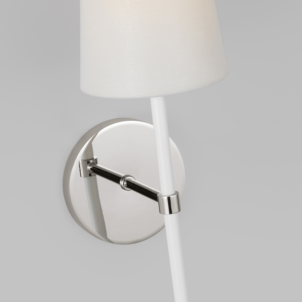 The Monroe tail sconce is inspired by graphic enameled metal jewelry and decorative accessories from kate spade with a nod to late 50s atomic era colorful designs. Monroe exhibits clean lighting profiles and dressed them up with painted sections and metal accents.