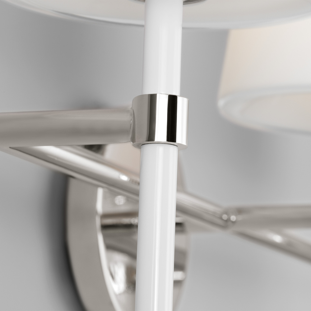 The Monroe three light vanity is inspired by graphic enameled metal jewelry and decorative accessories from kate spade with a nod to late 50s atomic era colorful designs. Monroe exhibits clean lighting profiles and dressed them up with painted sections and metal accents.