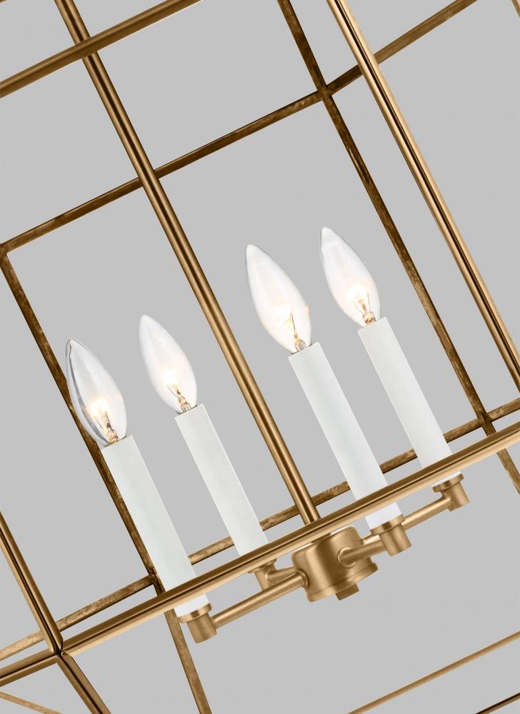 The Morrison four light indoor pendant in satin brass supplies ample lighting for your daily needs, while adding a layer of today's style to your home's décor. A lantern-like design with curved arms connecting to a cube-shaped frame