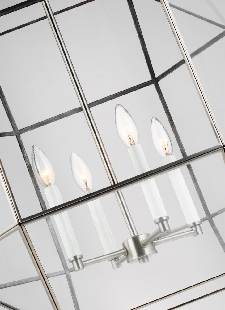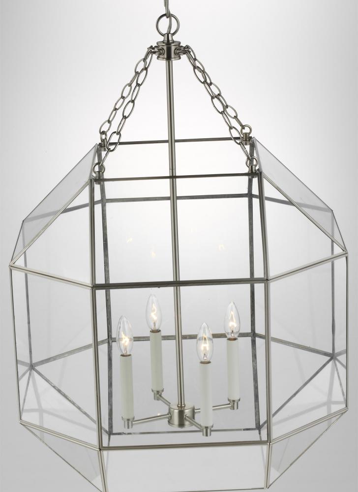 The Morrison four light indoor pendant in brushed nickel enhances the beauty of your home with ample light and style to match today's trends. A lantern-like design with curved arms connecting to a cube-shaped frame