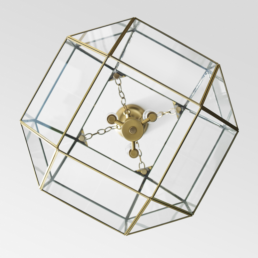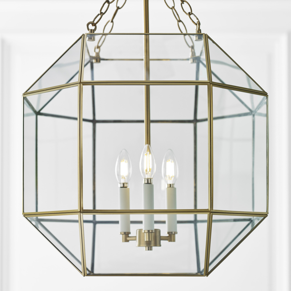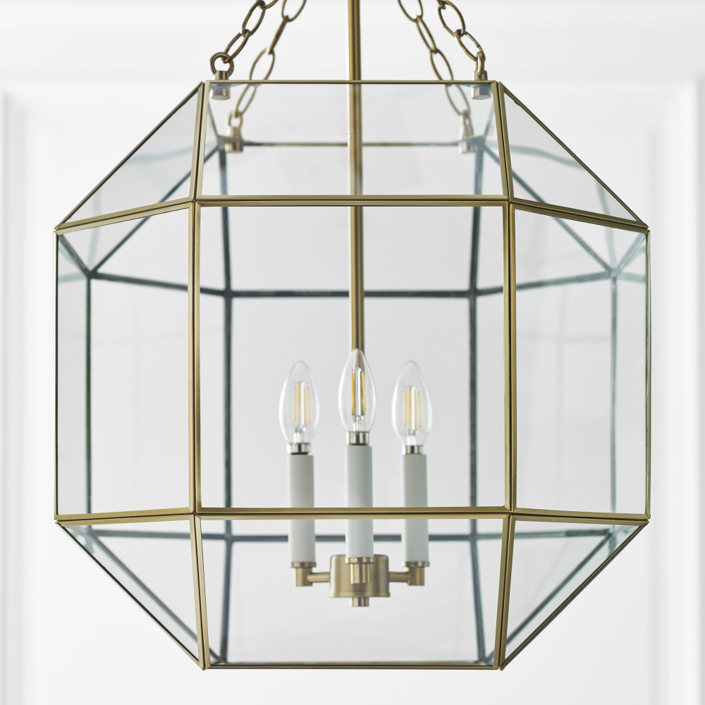 The Morrison three light indoor pendant in satin brass enhances the beauty of your home with ample light and style to match today's trends. A lantern-like design with curved arms connecting to a cube-shaped frame