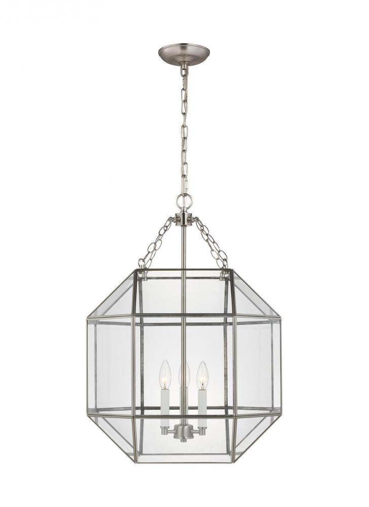 The Morrison three light indoor pendant in brushed nickel supplies ample lighting for your daily needs, while adding a layer of today's style to your home's décor. A lantern-like design with curved arms connecting to a cube-shaped frame