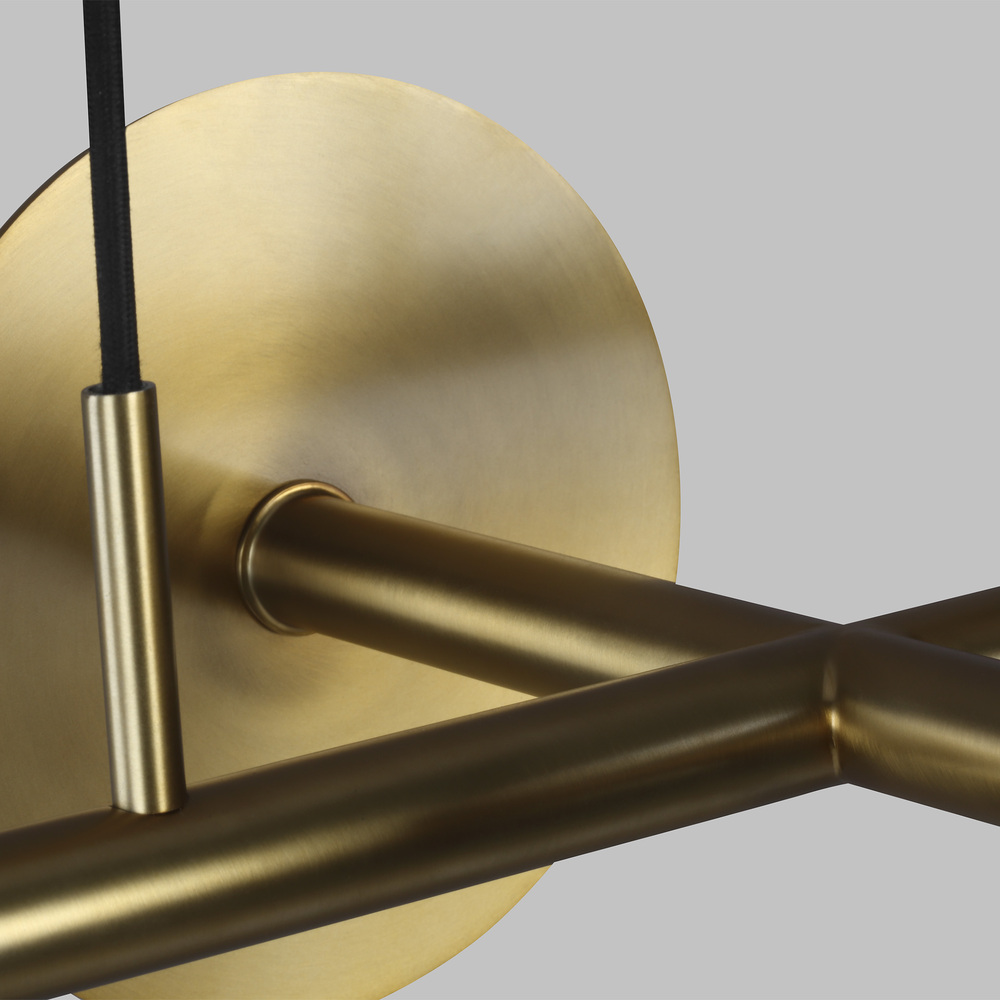 Nodes task, ceiling and wall lighting is minimal yet bold, highlighting Kelly's distinctive juxtaposition of mixed-materiality and curvilinear form. Light radiates from milk glass globes set against metal discs. All fixtures can be used or without the discs. The cast canopy is available in Burnished Brass or Midnight Black. Hanging fixtures within this family feature black fabric cords, while pivot sconces can be cord and plug or hard wire.