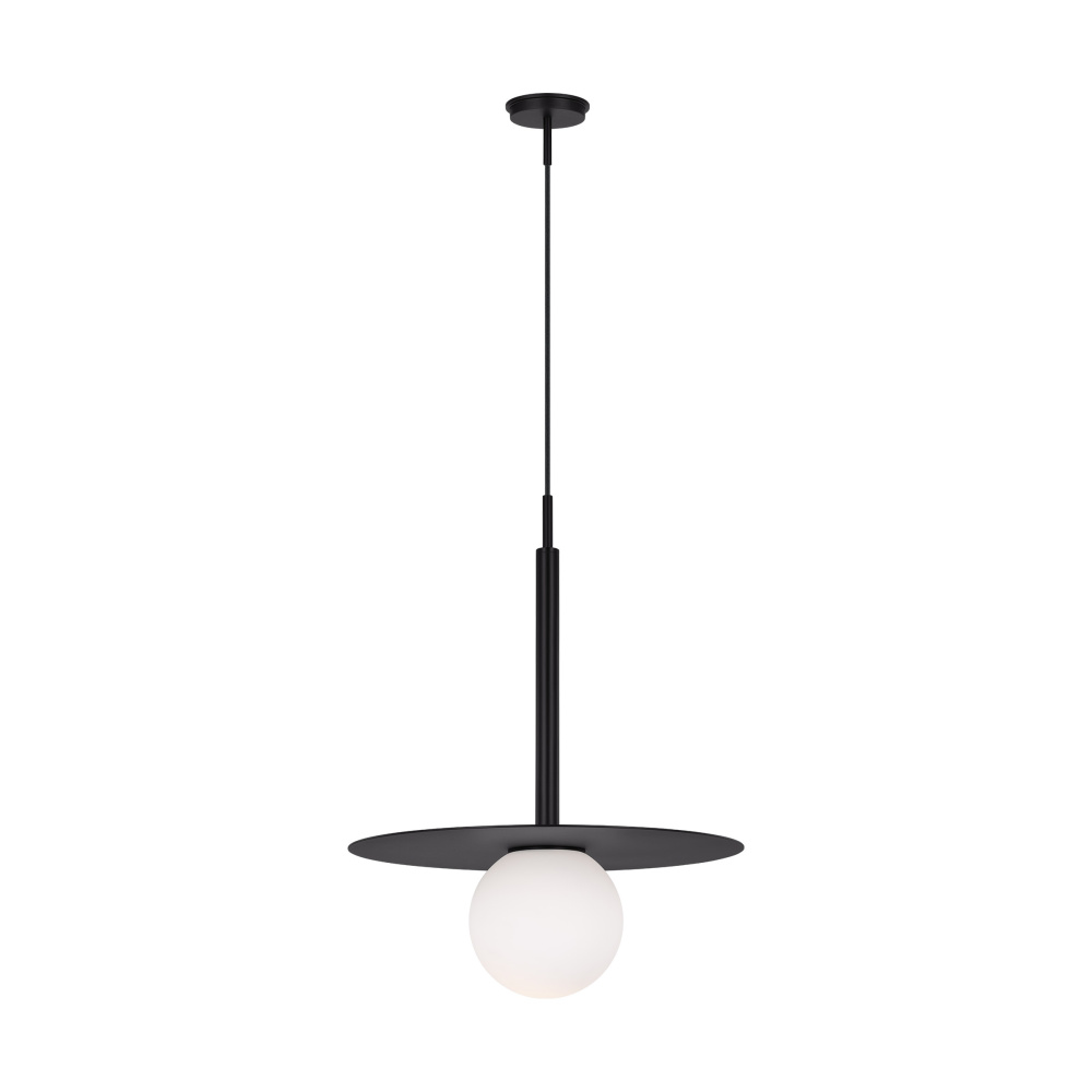 The Nodes one light indoor pendant in burnished brass provides abundant light to your home, while adding style and interest. Nodes task, ceiling and wall lighting is minimal yet bold, highlighting Kelly's distinctive juxtaposition of mixed-materiality and curvilinear form. Light radiates from milk glass globes set against metal discs. All fixtures can be used or without the discs. The cast canopy is available in Burnished Brass or Midnight Black. Hanging fixtures within this family feature black fabric cords, while pivot sconces can be cord and plug or hard wire.
