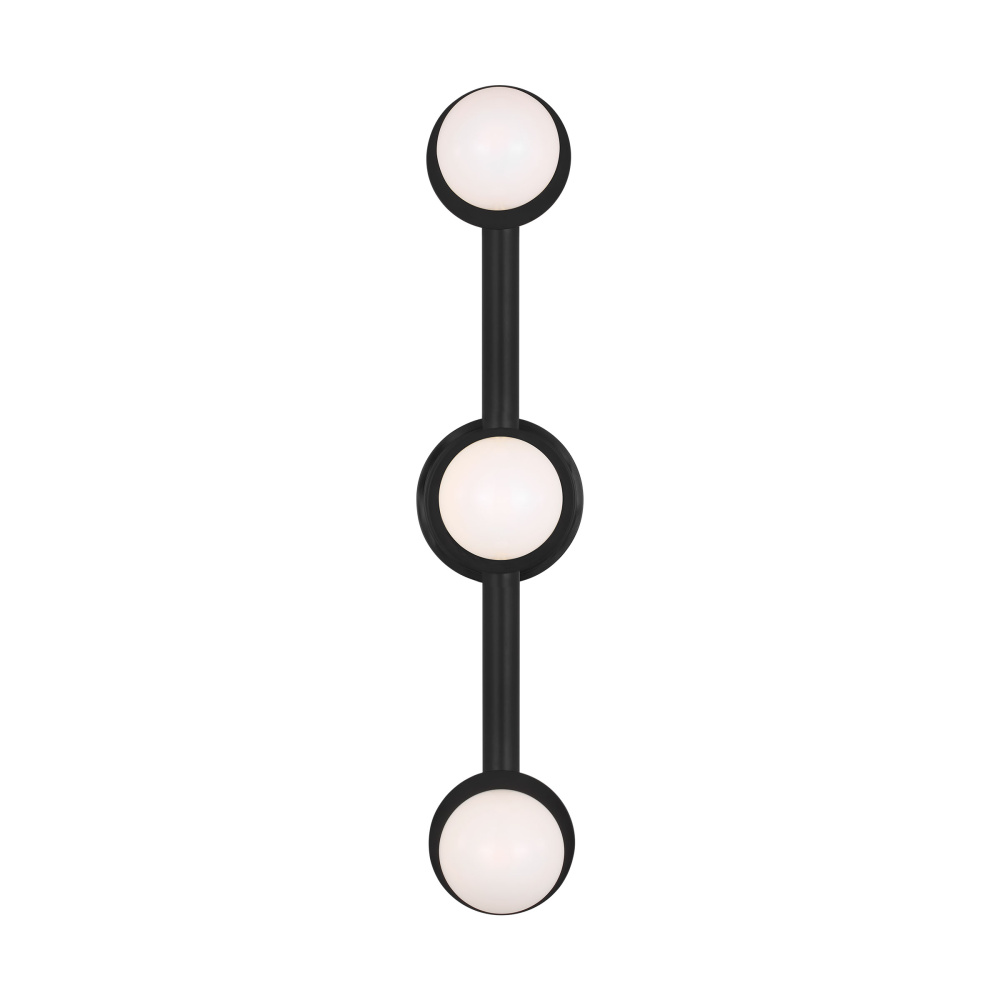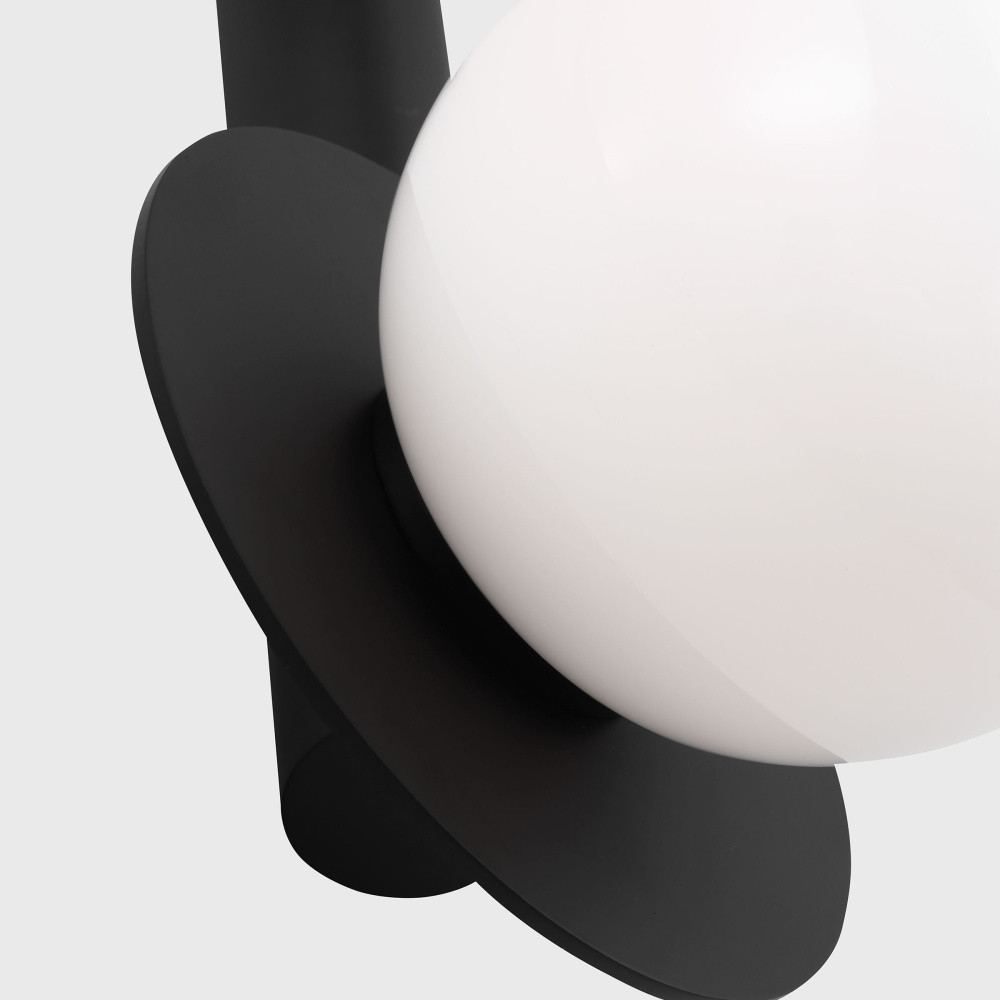 The Nodes task, ceiling, and wall lighting is minimal yet bold, highlighting Kelly Wearstler's distinctive juxtaposition of mixed-materiality and curvilinear form. Light radiates from milk glass globes set against metal discs. All fixtures can be used or without the discs. The cast canopy is available in Burnished Brass, Midnight Black or Polished Nickel. Hanging fixtures within this family feature black fabric cords, while pivot sconces can be cord and plug or hard wire.