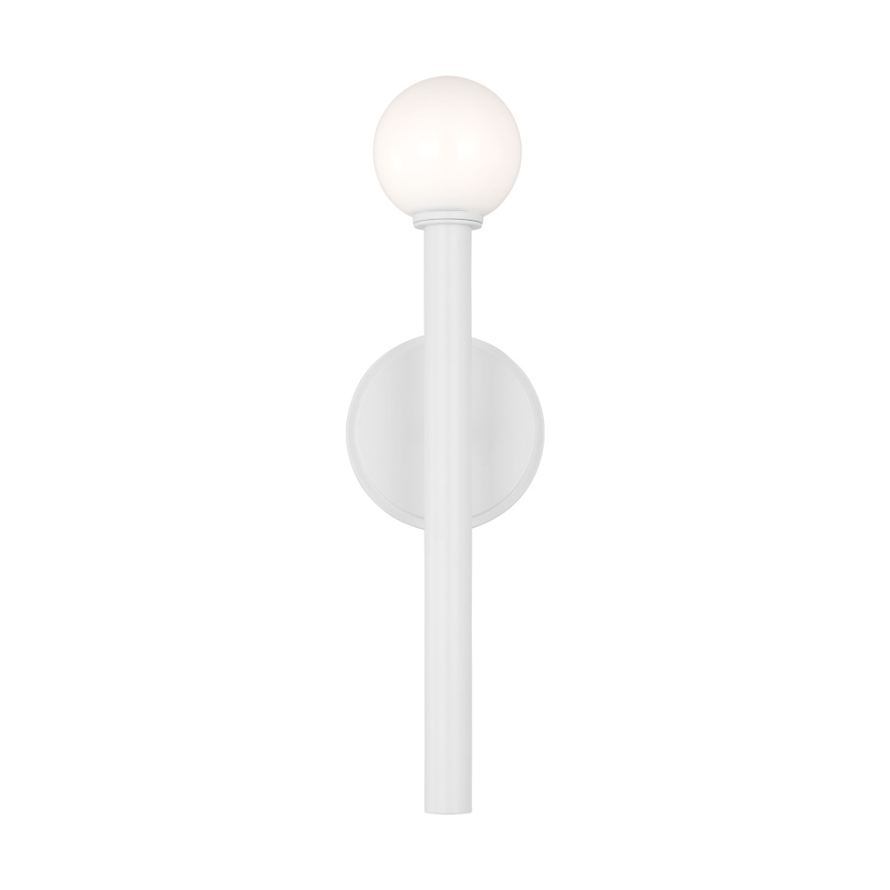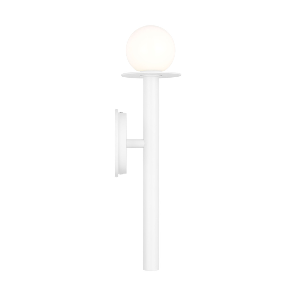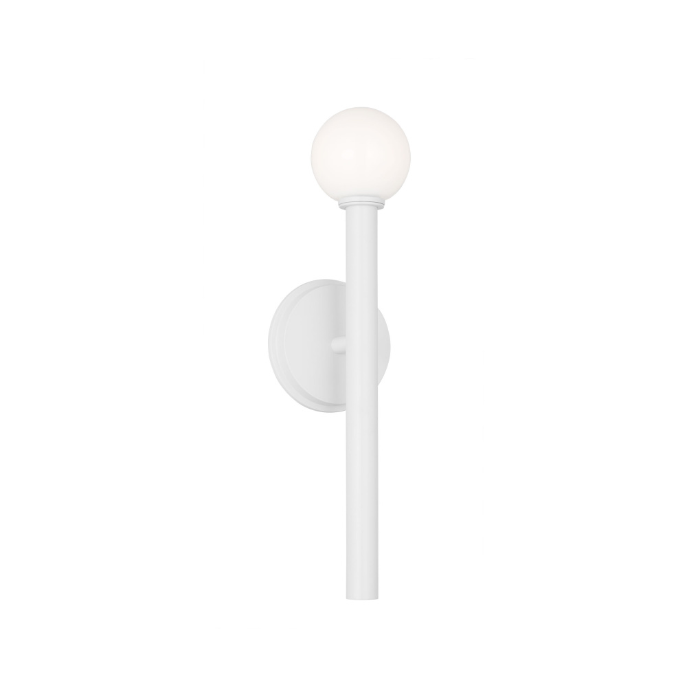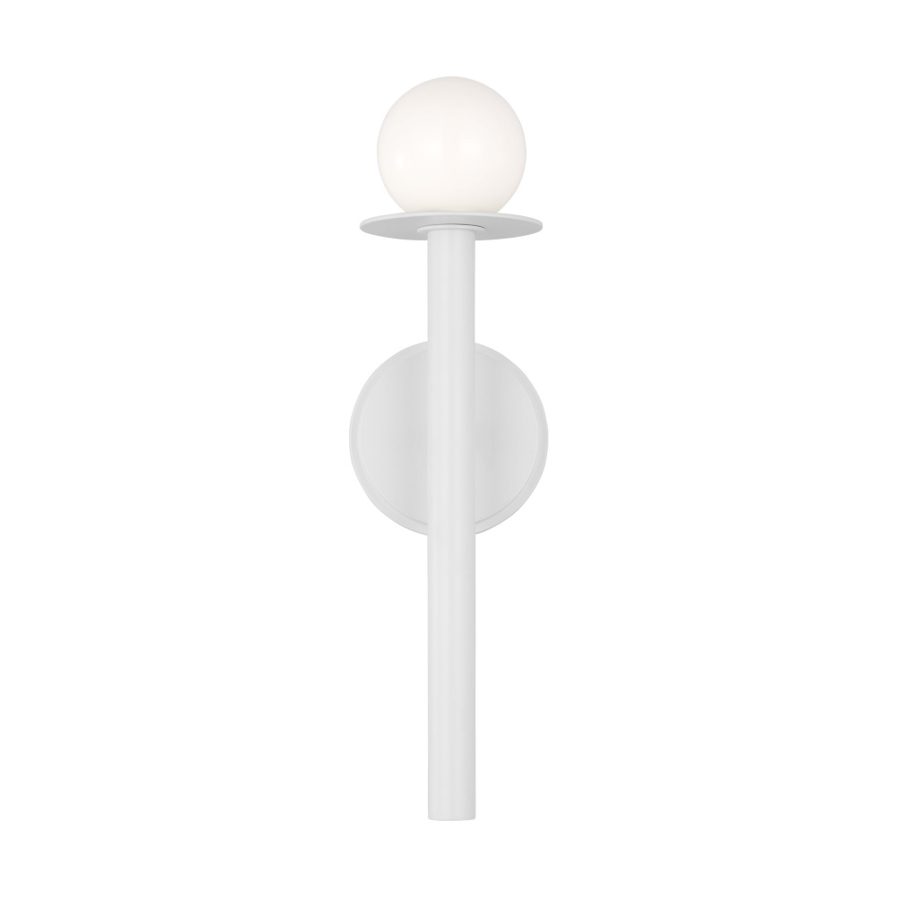 Nodes task, ceiling and wall lighting is minimal yet bold, highlighting Kelly's distinctive juxtaposition of mixed-materiality and curvilinear form. Light radiates from milk glass globes set against metal discs. All fixtures can be used or without the discs. The cast canopy is available in modern finishes. Hanging fixtures within this family feature black fabric cords, while pivot sconces can be cord and plug or hard wire.