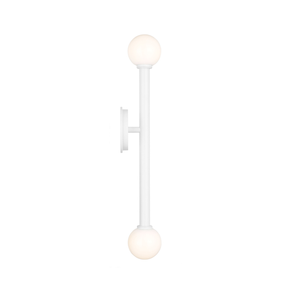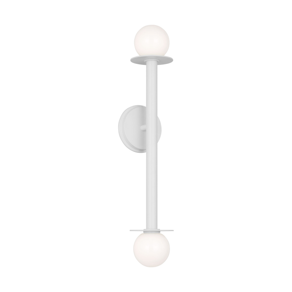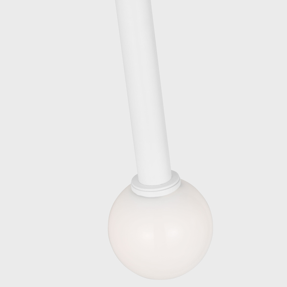 Nodes task, ceiling and wall lighting is minimal yet bold, highlighting Kelly's distinctive juxtaposition of mixed-materiality and curvilinear form. Light radiates from milk glass globes set against metal discs. All fixtures can be used or without the discs. The cast canopy is available in modern finishes. Hanging fixtures within this family feature black fabric cords, while pivot sconces can be cord and plug or hard wire.