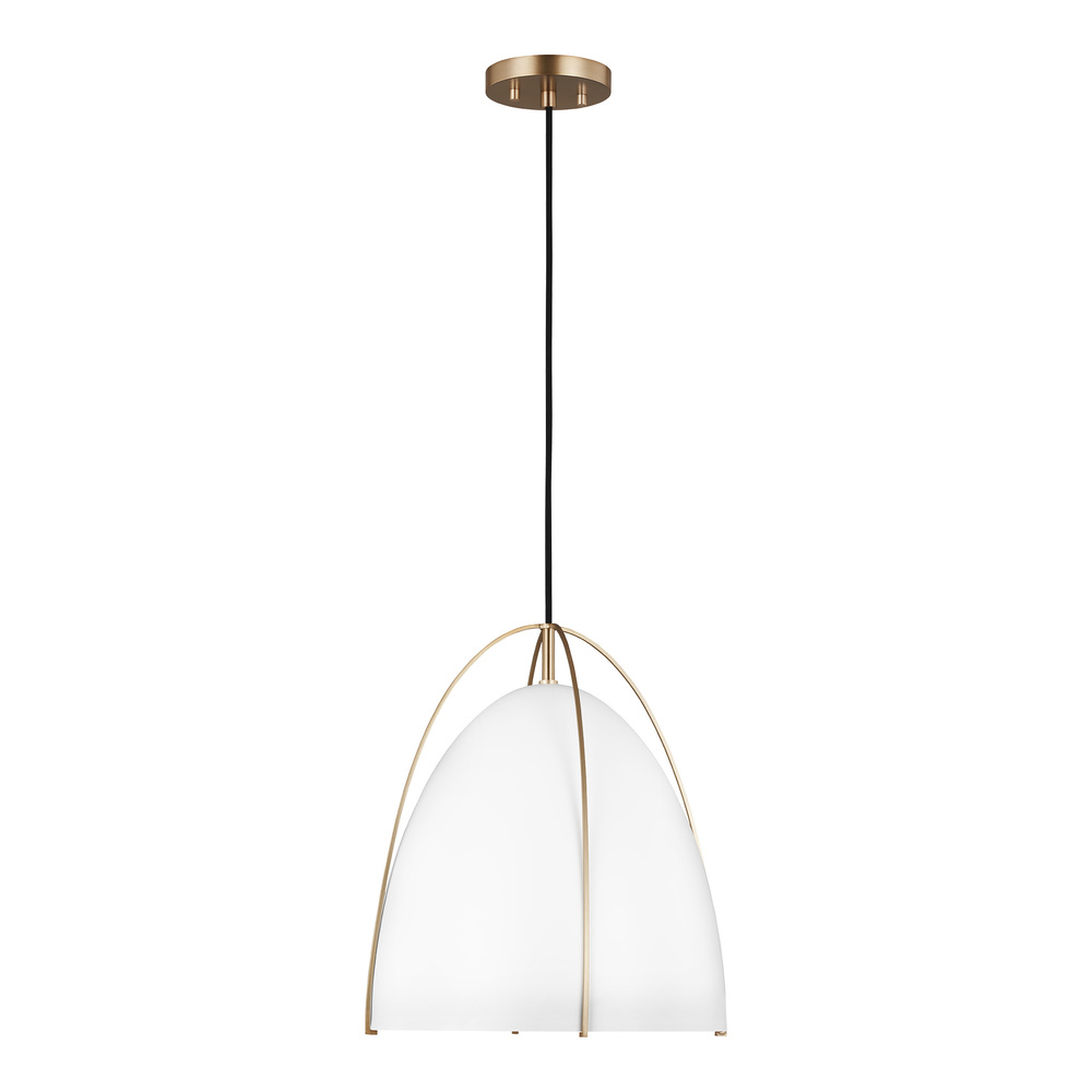 The Norman one light indoor pendant in satin brass is an ENERGY STAR® qualified lighting fixture that uses LED bulbs to save you both time and money.