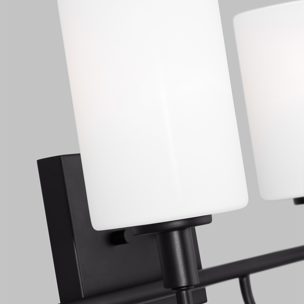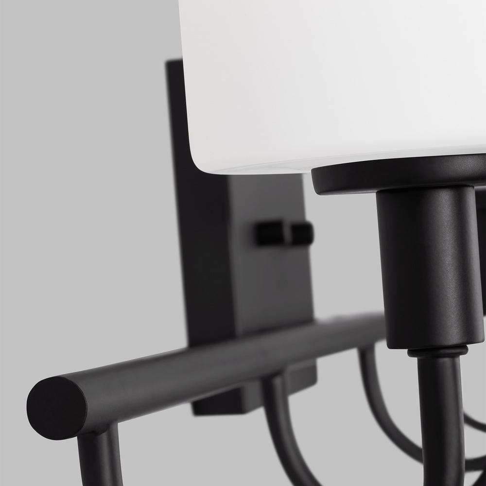 Oak Moore is a universal vanity series available in four finishes. Curved bar detail and etched white shade give it a transitional look. Install the light with glass shades up or down to light up every corner of your room. The shades are made of Etched White glass to cast a soft light throughout your vanity area.