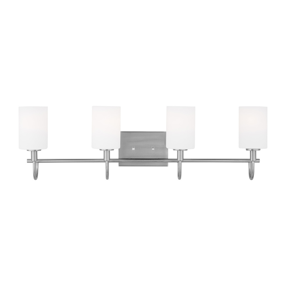 Oak Moore is a universal vanity series available in four finishes. Curved bar detail and etched white shade give it a transitional look. Install the light with glass shades up or down to light up every corner of your room. The shades are made of Etched White glass to cast a soft light throughout your vanity area.