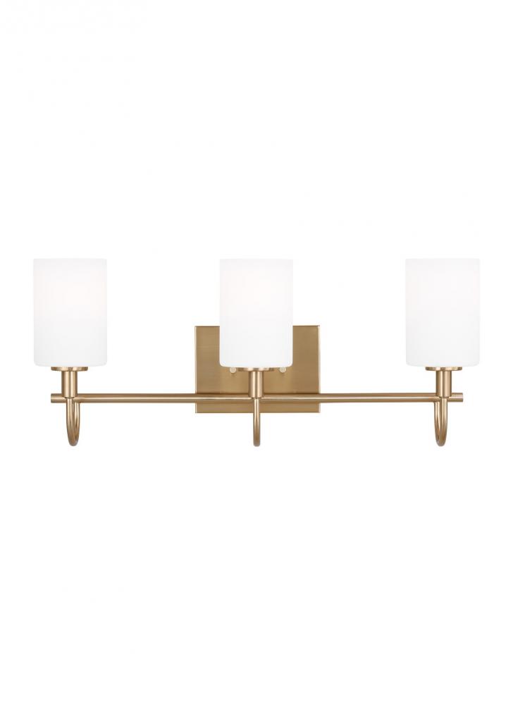 Oak Moore is a universal vanity series available in four finishes. Curved bar detail and etched white shade give it a transitional look. Install the light with glass shades up or down to light up every corner of your room. The shades are made of Etched White glass to cast a soft light throughout your vanity area.
