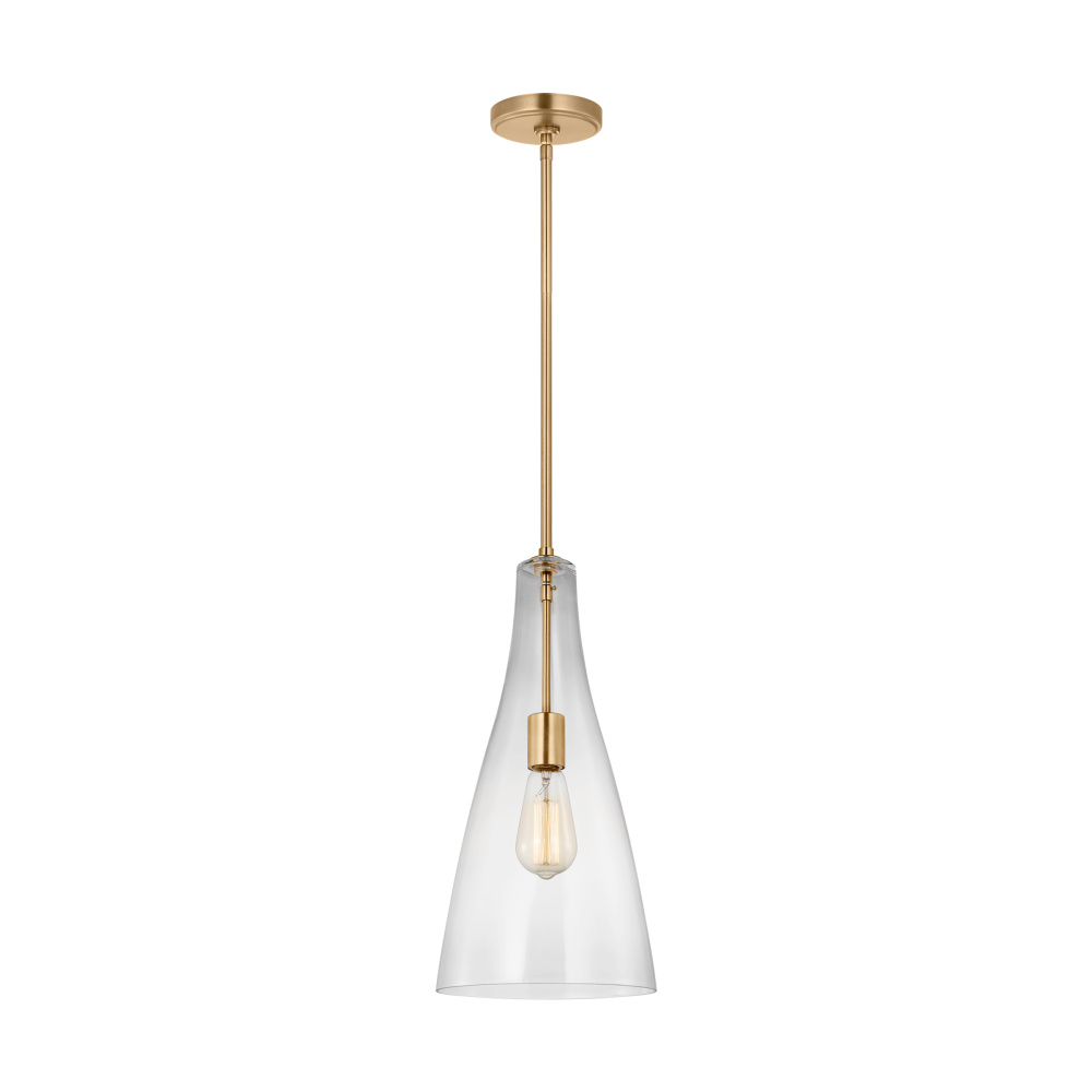 The Arilda one-light pendant series springs to life with hand-blown glass's fine artistry and technique. Spindle-inspired Clear glass shades give dimension and character to these traditional pendant lights. Paired with Edison-style bulbs, this pendant is a period-inspired classic to complement a wide range of decor from Colonial to nautical to rich, European-inspired settings. Available in four hardware finishes, Arilda pendants may be installed as single pendants or clustered in multiples, which would be an ideal installation used for entry lighting, dining room lighting, living room lighting or kitchen lighting over a table.