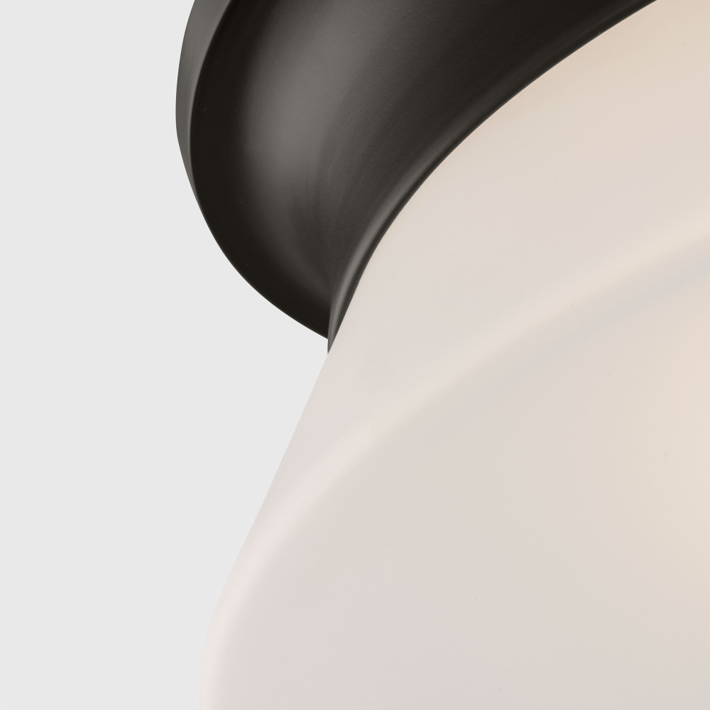 A flared conical form takes center stage in the Panos flush mount by Alexa Hampton. The harmony of proportions between the signature metal band and white glass diffuser highlights traditional elements with modern detail. The versatile Panos flush mount will complement any interior aesthetic and can be styled over a dining table, entryway, in a bedroom or lining a corridor.