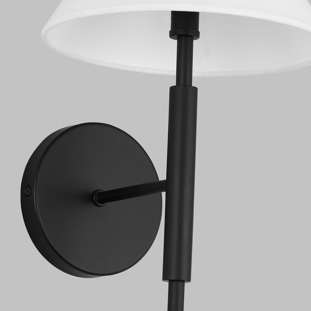 Porteau by Drew & Jonathan Scott is a sleek, chic, contemporary design featuring an updated j-arm style. Made from steel, Porteau features a classic silhouette with curved arms branching from a central rod. Each arm is topped with a candle-style sconce for 60W candelabra bulbs (sold separately), while small fabric drum shades diffuse light for a warm glow.