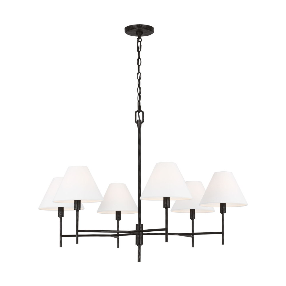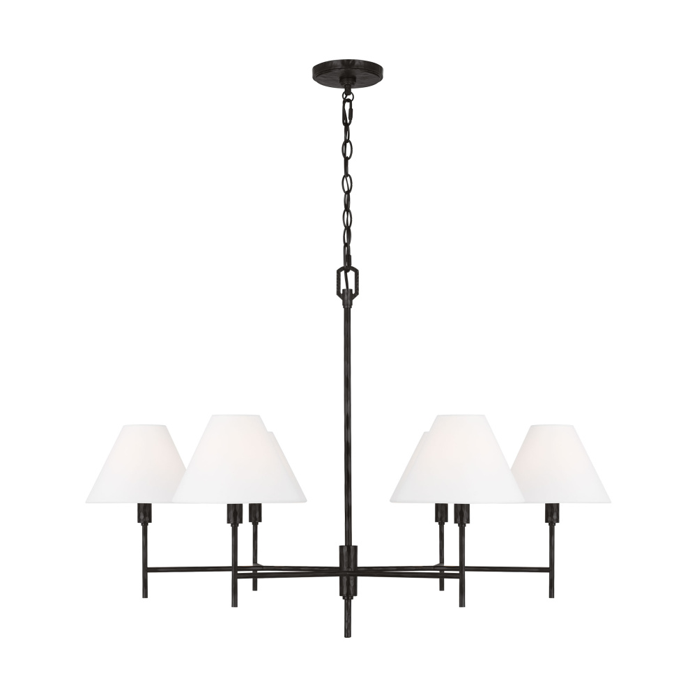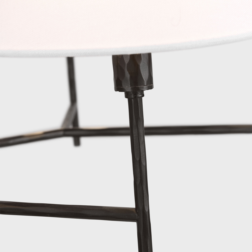 Crafted with Steel in a Aged Iron finish with white linen fabric shades