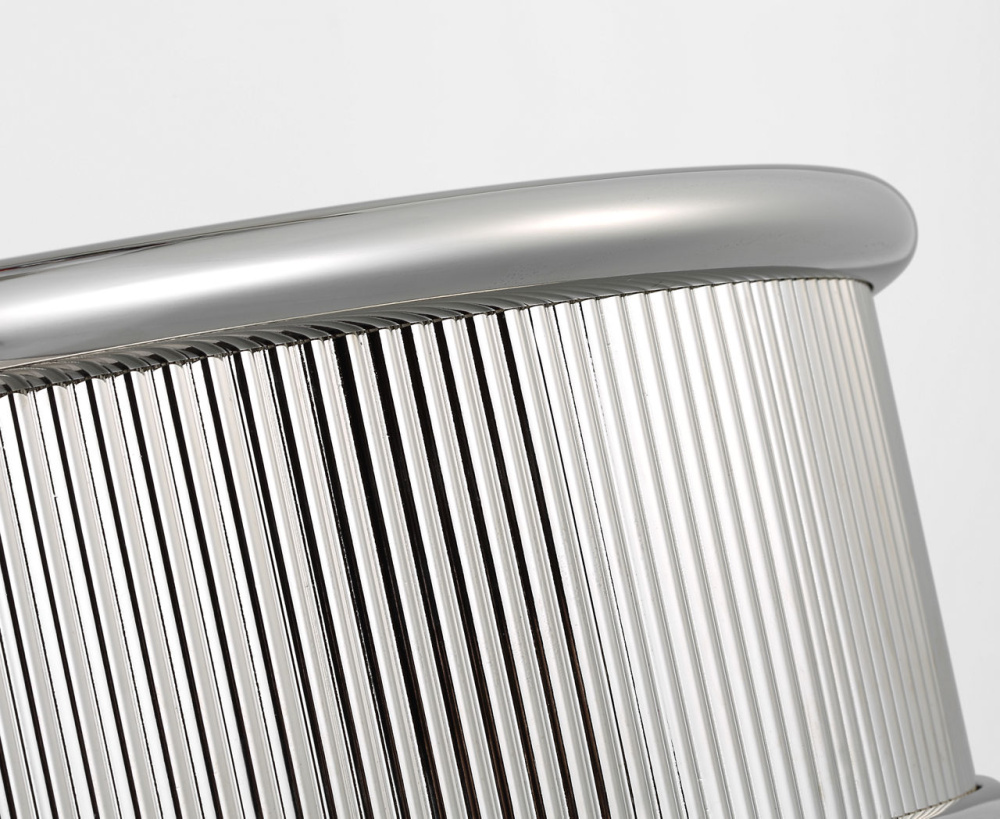 Paloma Contreras’ Ritz 18" Flush Mount makes a bold yet elegant statement With its larger scale and sculptural detailing. A finely reeded band adds texture and depth, while the frosted silk screen glass diffuser creates a soft, ambient glow. Designed for hallways, bathrooms, or walk-in closets, this fixture embodies Contreras’ vision of timeless design With a touch of quiet luxury.