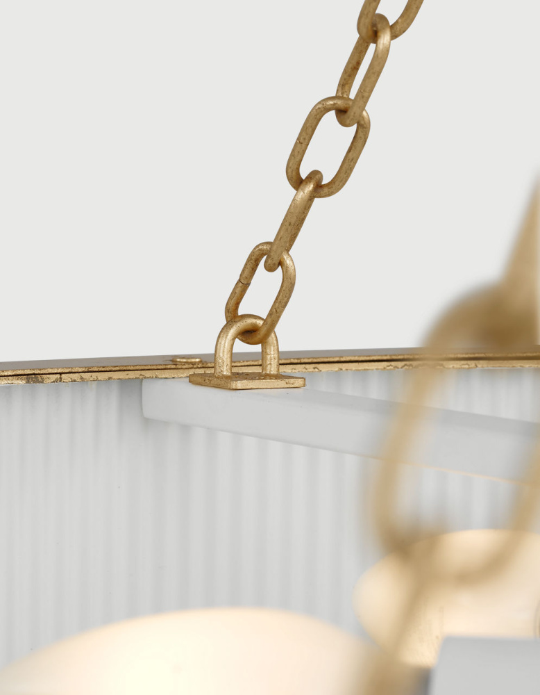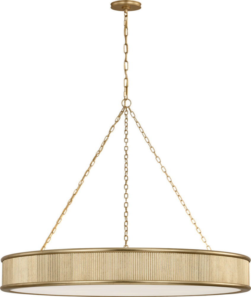 Paloma Contreras’ Ritz 36" Chandelier offers a bold interpretation of architectural refinement. Its gracefully scaled silhouette is encircled by a delicately reeded band, inspired by classic millwork. A frosted silk screen glass diffuser lends a soft, luminous quality to the light, enhancing the chandelier’s sculptural presence. Balancing tradition With modern restraint, this fixture brings timeless sophistication to dining rooms, living rooms, kitchens, bedrooms, or entry foyers.