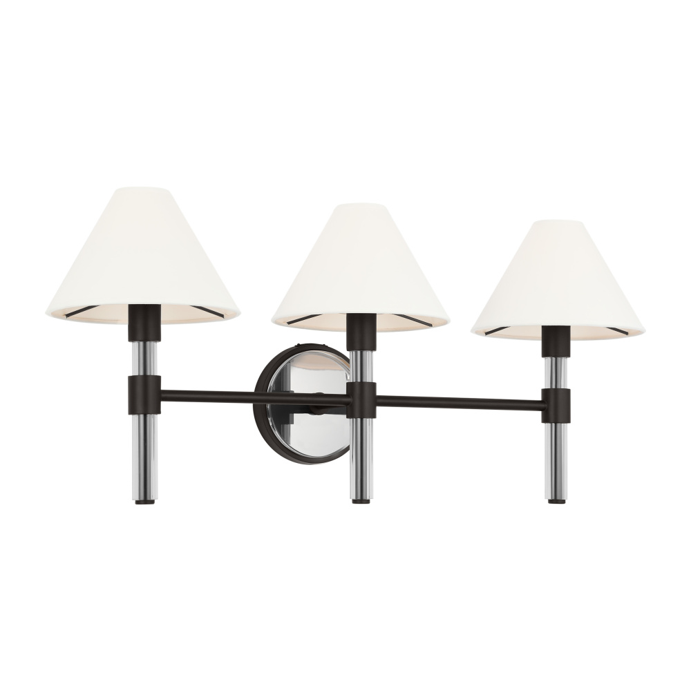 The Robert three light vanity fixture has strong clean lines of Lucite stems that elevate and support the paper empire shades in this shapely series.