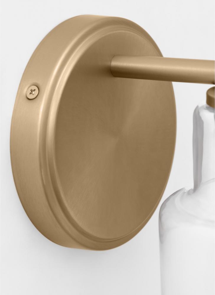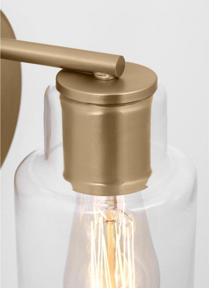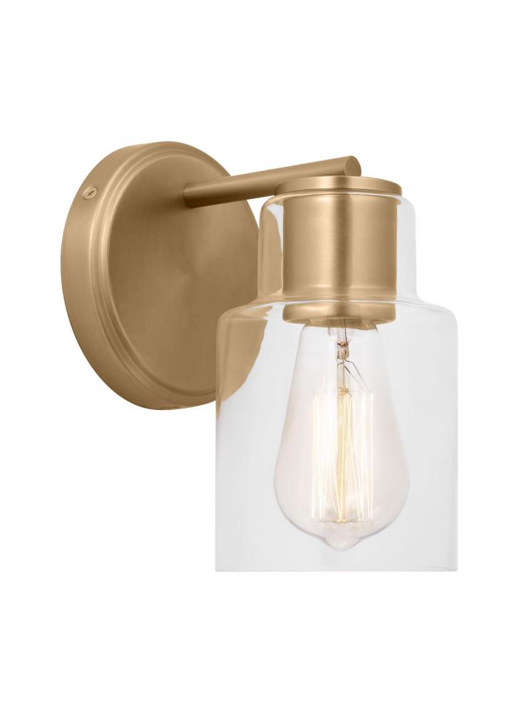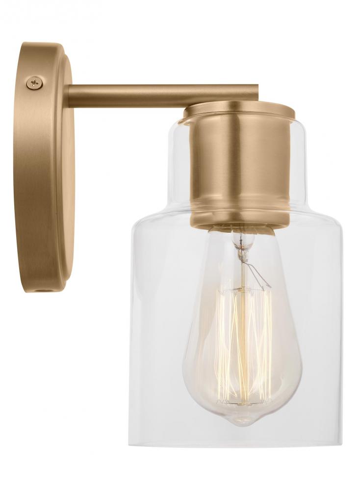 Add a bright burst of light where you need it most with the classic Drew & Jonathan Sayward Small Sconce, featuring a round metal backplate and clear glass shade. Made to coordinate across a broader range of bath hardware and design styles, the Sayward is available in four popular finishes, Brushed Steel, Chrome, Midnight Black, and Satin Brass. This light looks great on its own or installed above a bathroom vanity, and the glass shade makes it ideal for filament bulbs. This fixture may be mounted in the up or down position, and is cETL listed for damp locations, making it the perfect lighting solution for any space.