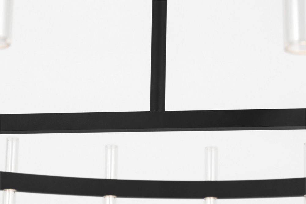 Silas 48" Chandelier by Sean Lavin features clean lines and precise detailing that define its minimalist character. Clear acrylic cylindrical diffusers pair With integrated LED light sources to create a crisp, modern effect. Each diffuser sits against a streamlined frame to emphasize balance and proportion without excess. With its expansive scale, the 48" chandelier is ideal for living rooms, dining rooms, great rooms, and foyers. The Silas Collection brings refinement to all contemporary interiors, offering lighting that is both sculptural and functional.