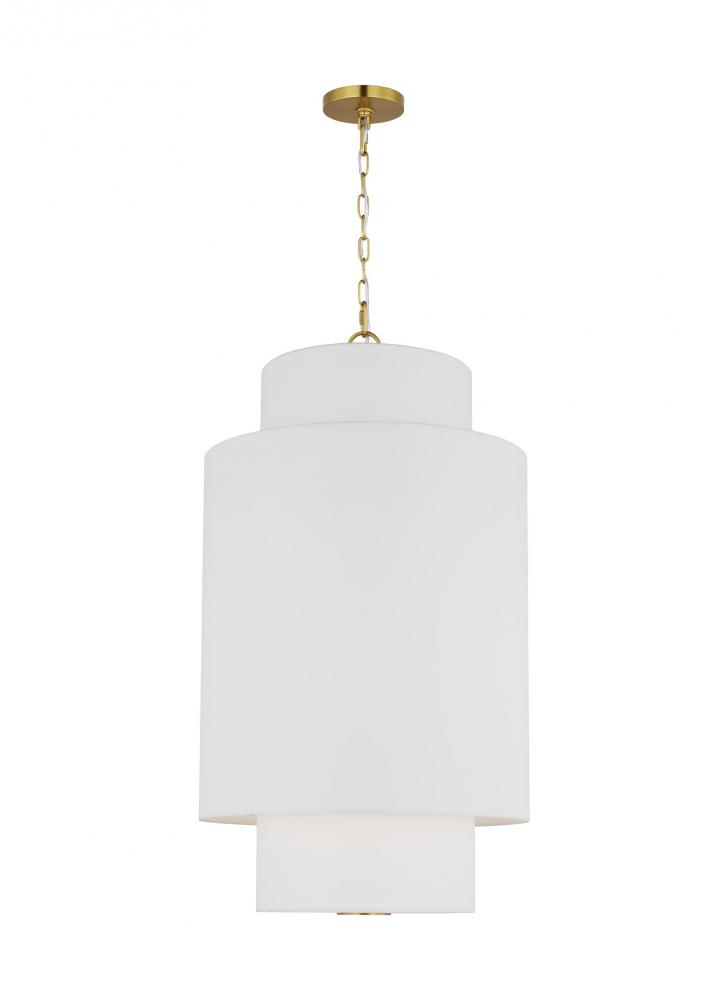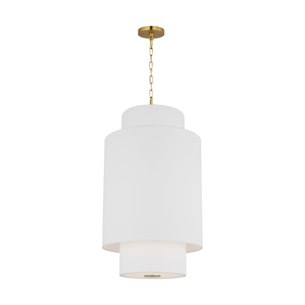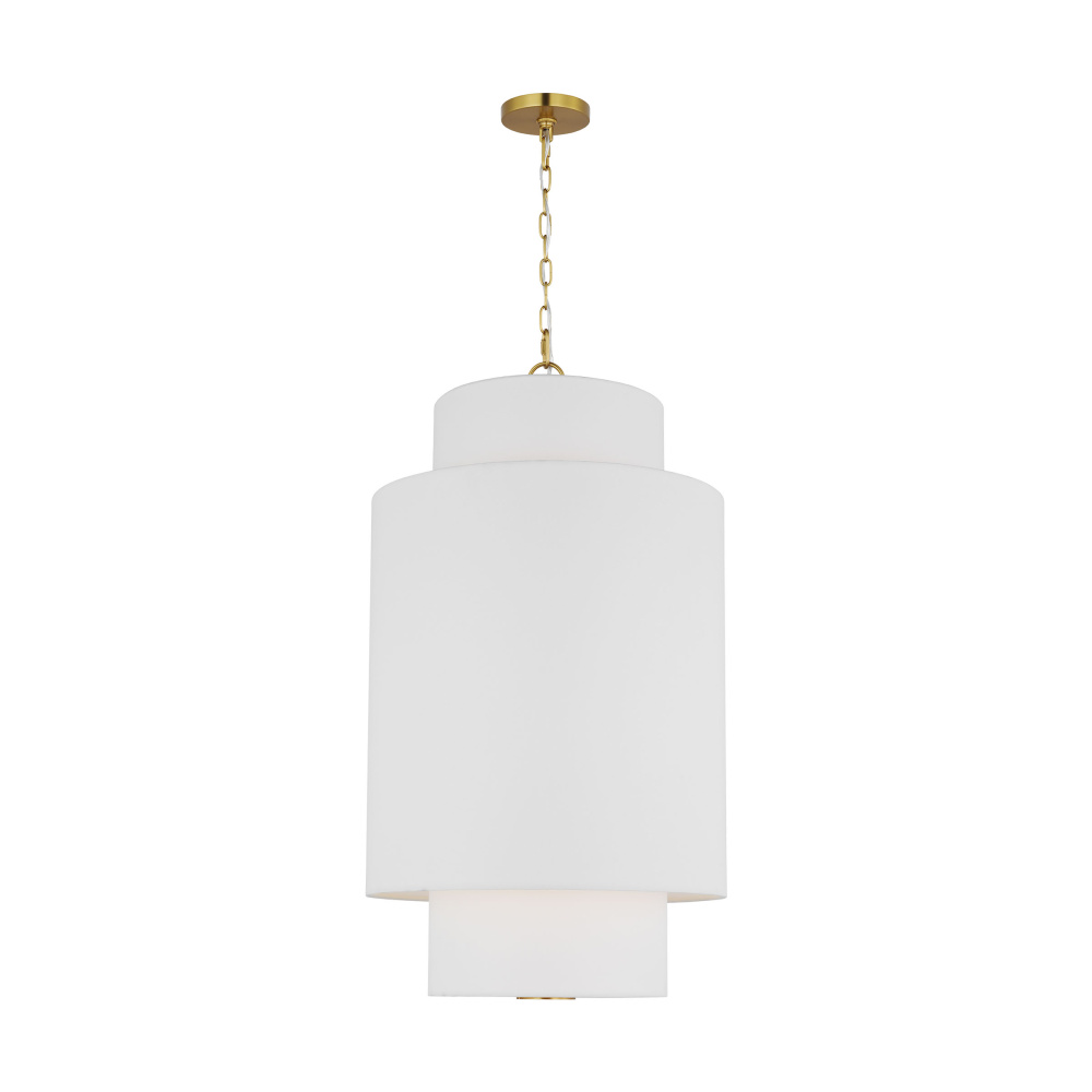 Inspired by kate spade new york whimsical geometry and playful lines, Sawyer has a striking silhouette with graphically taped shades. The Sawyer is a wide playful hanging shade with arched lines and wide, graphically taped shades. This simple and graphic chandelier would be great over a dining table or nook, as well as in a living room scenario.