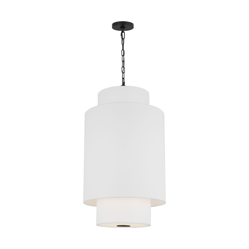 Inspired by kate spade new york whimsical geometry and playful lines, Sawyer has a striking silhouette with graphically taped shades. The Sawyer is a wide playful hanging shade with arched lines and wide, graphically taped shades. This simple and graphic chandelier would be great over a dining table or nook, as well as in a living room scenario.