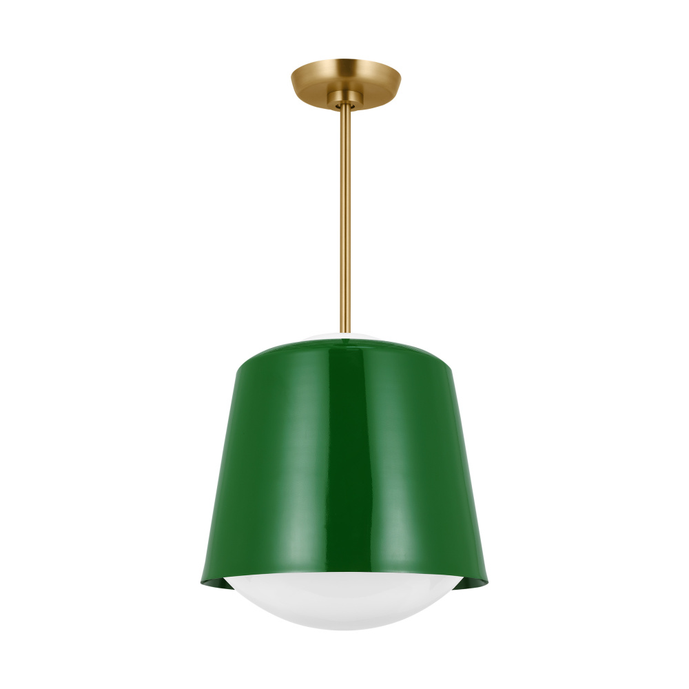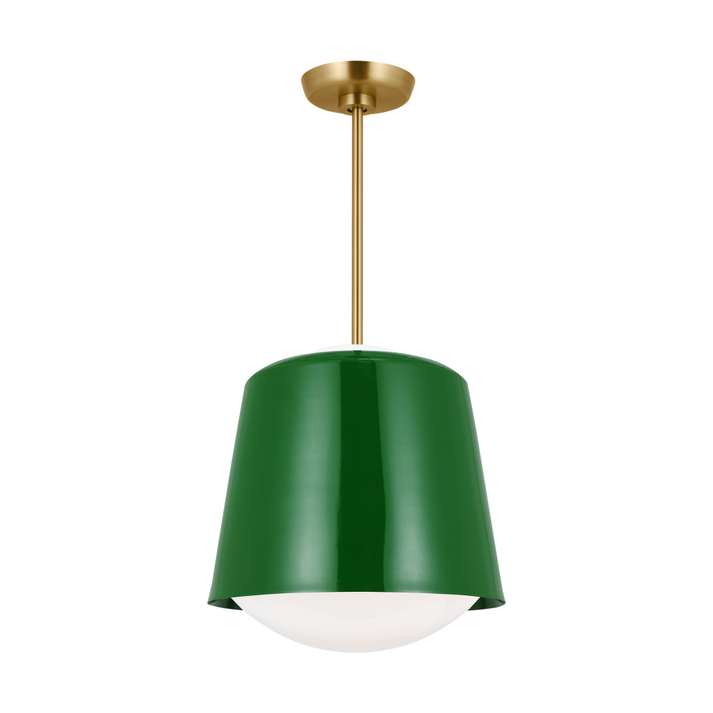 The Draper series by kate spade new york is a modern and sophisticated lighting fixture that adds a touch of elegance to any room. With its sleek metal design and high-quality materials, this series is the perfect blend of style and functionality. The metal shade rests on Milk glass, allowing light to illuminate both up and down.