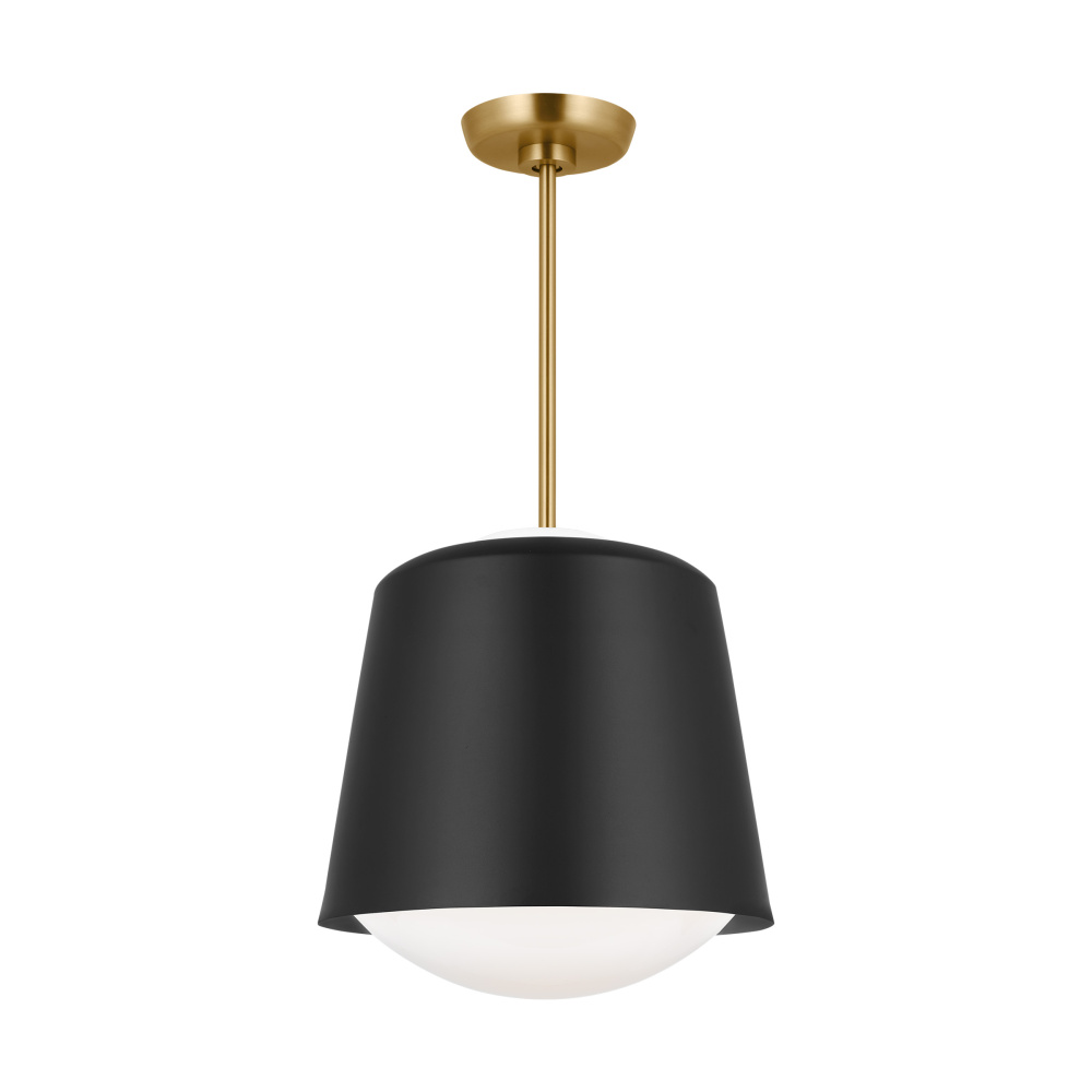 Modern and industrial elements meet in the Draper series, a metal shade that rests atop Milk glass to complete the look